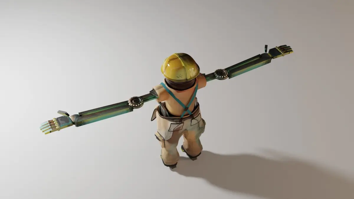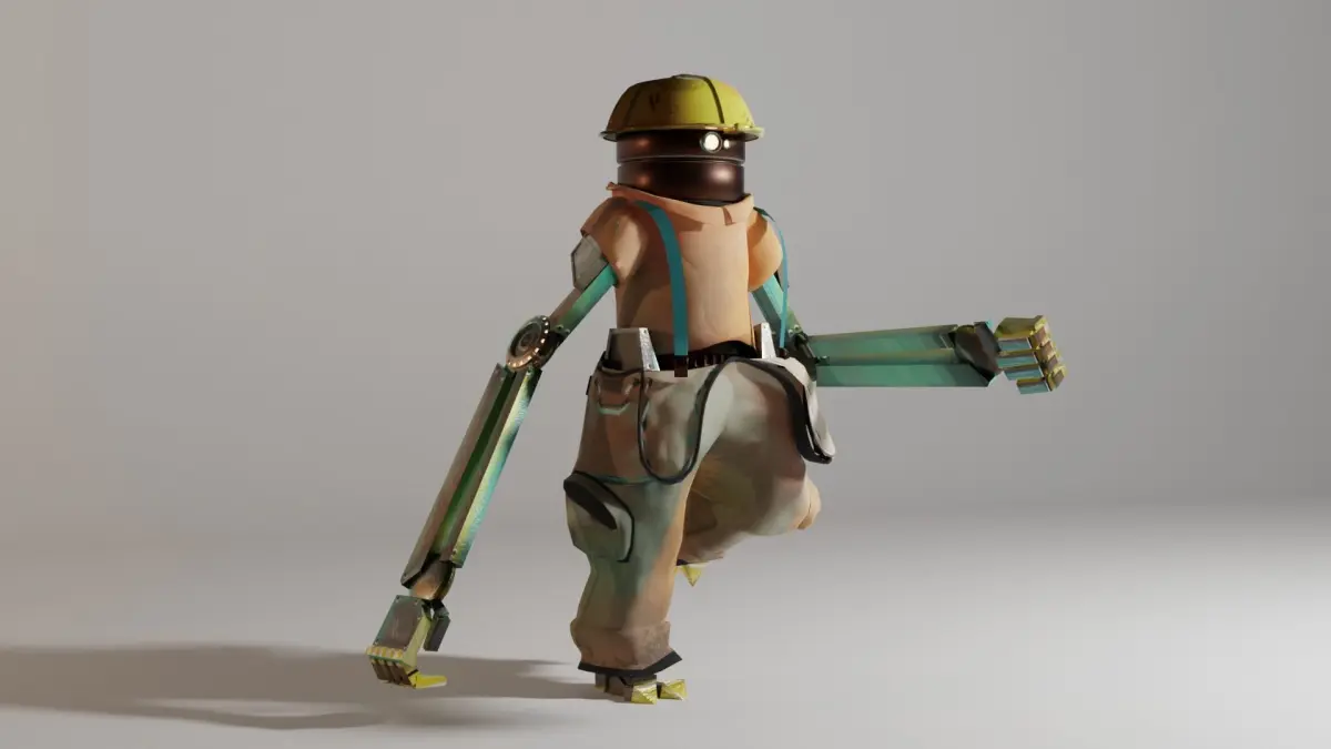 A worker robot, mechanized and clothed. This little fella will make so many fun nuts and bolts. He's a fully rigged character, with proper parenting and weightpainting. The only part of the model that struggles with the rig, is the shirt. This can be fixed with shape keys, some of which come with the original blend file.