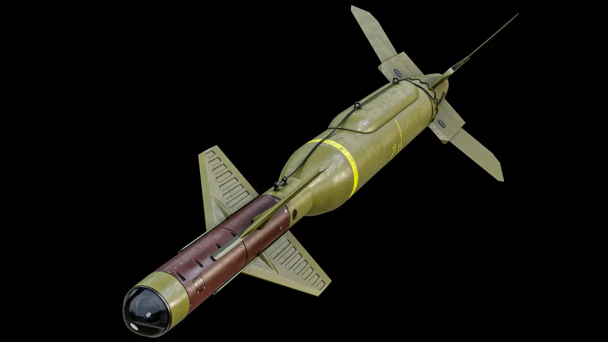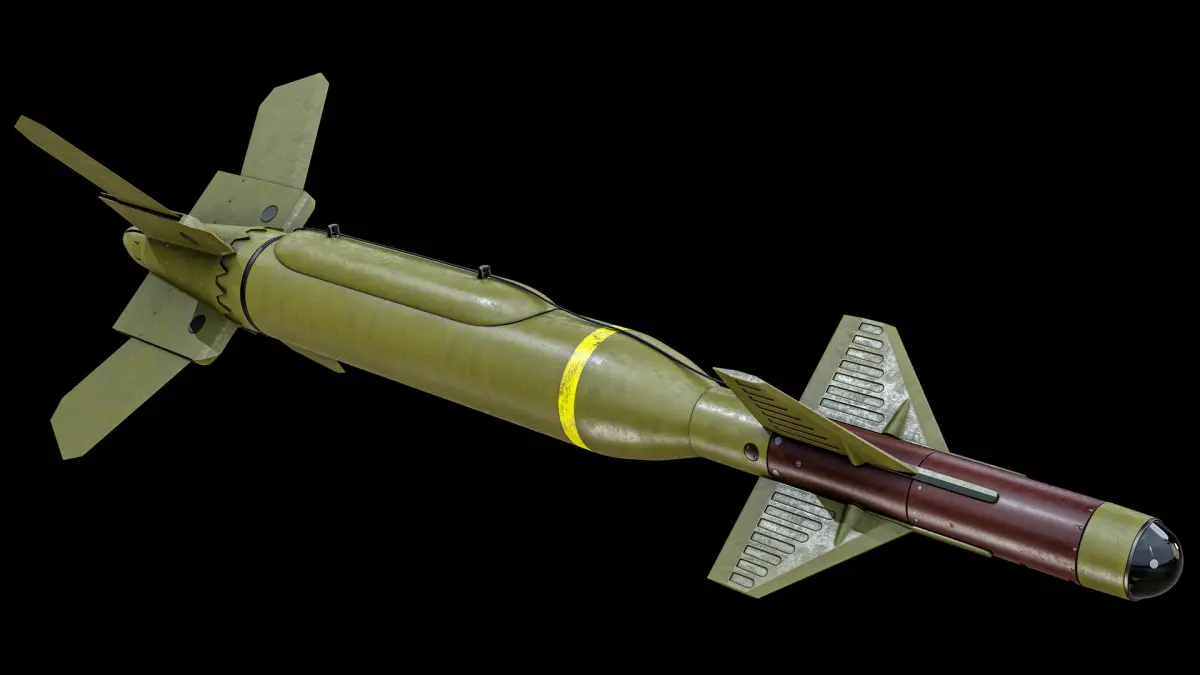 Super realistic high detailed Rigged Green GBU-24 Paveway III Laser Guided Bomb 3D Model with high resolution textures and PBR maps.