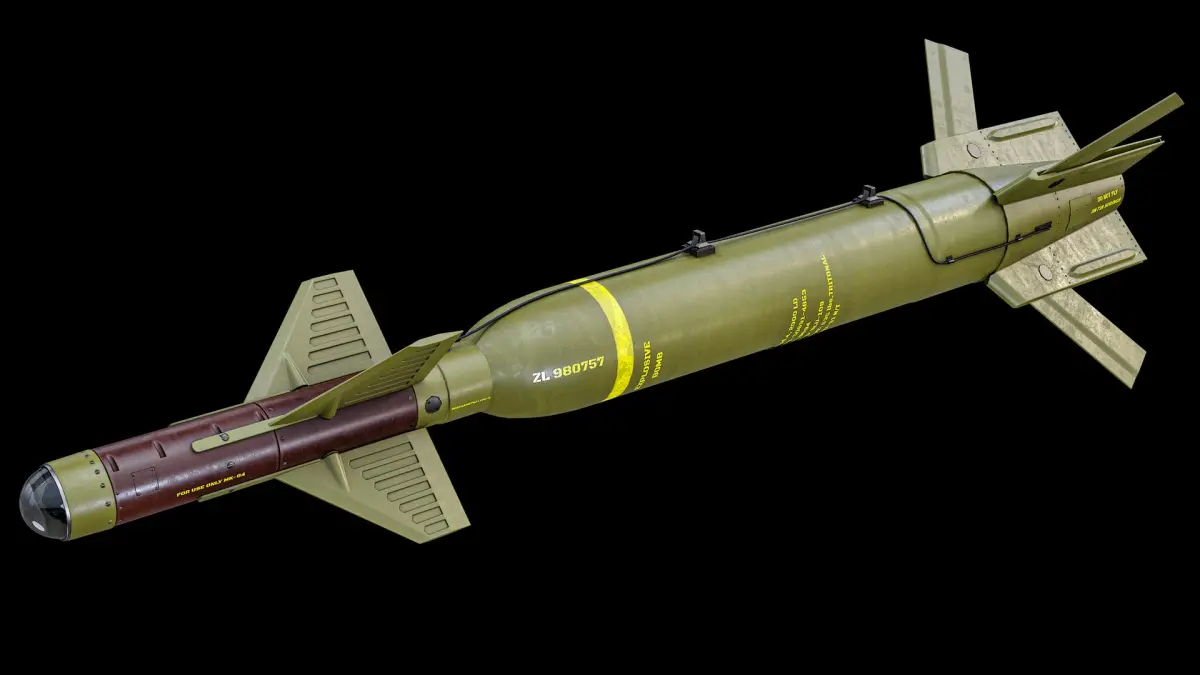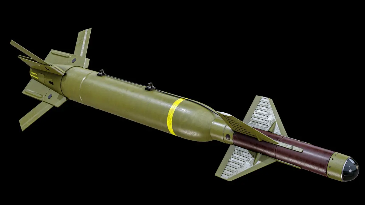 Super realistic high detailed Rigged Green GBU-27 Paveway III Laser Guided Bomb 3D Model with high resolution textures and PBR maps.