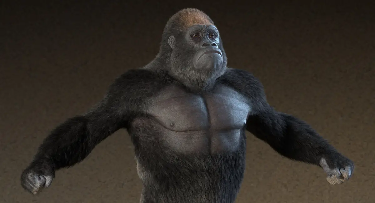 A realistic model of a Lowland Gorilla that is fully rigged in Maya 2018. The deformations are enhanced with 79 muscle objects and 326 blenshapes for realistic deformations and jiggle. No plugins are required. You can choose between Vray and Arnold for rendering.