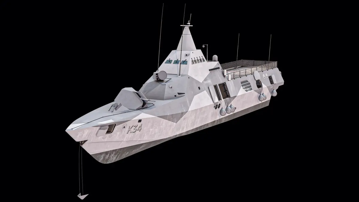 Super realistic high detailed HSwMS - Visby Class Corvette Modern Military Vessel 3D Model with high resolution textures and PBR maps.
