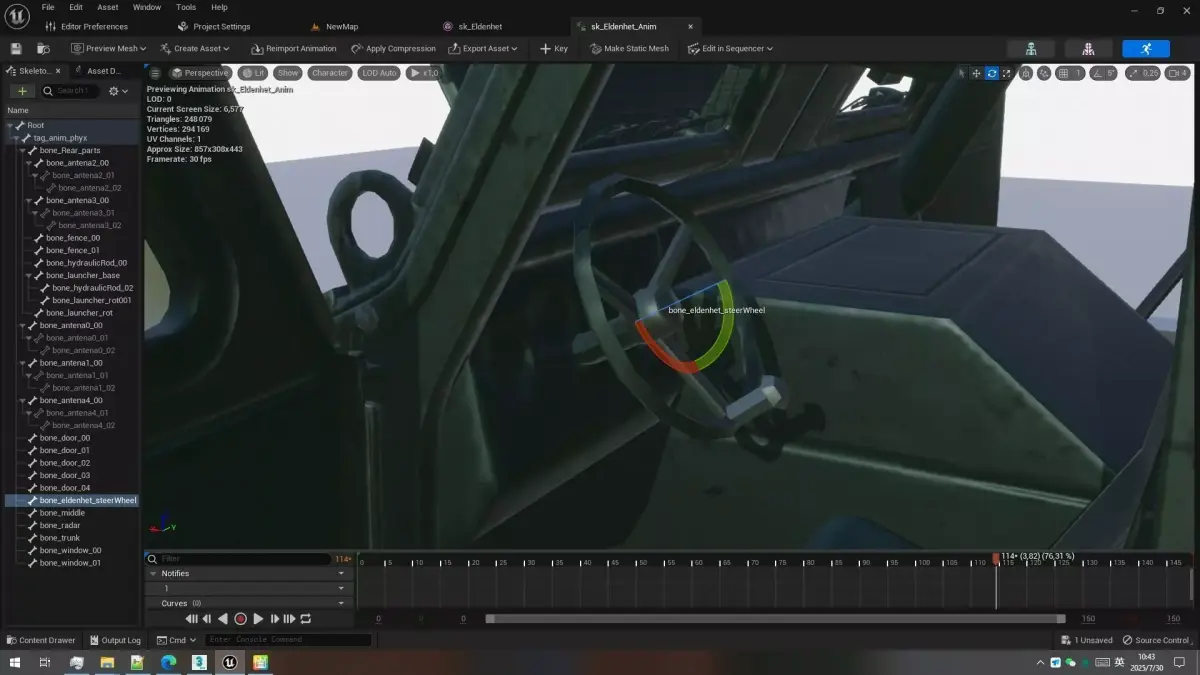 Rigged and animated all the movable parts, missile launcher, tires, doors, hydraulic rod, support rod, antena, missile launcher etc.