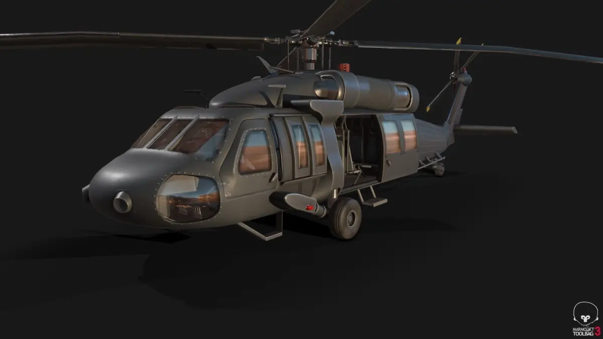 Model is based upon (but not accurate to) the UH-60 Blackhawk Helicopter.