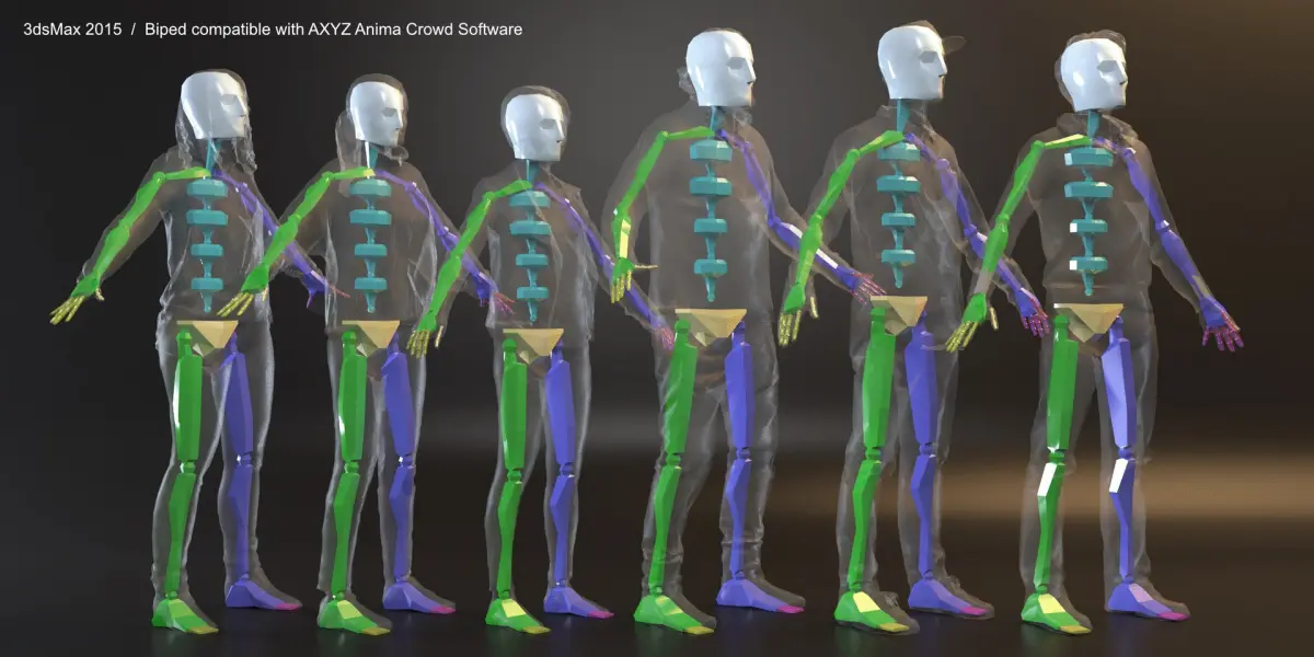 - 3dsMax Bipeds are compatible with AXYZ Anima Crowd Software