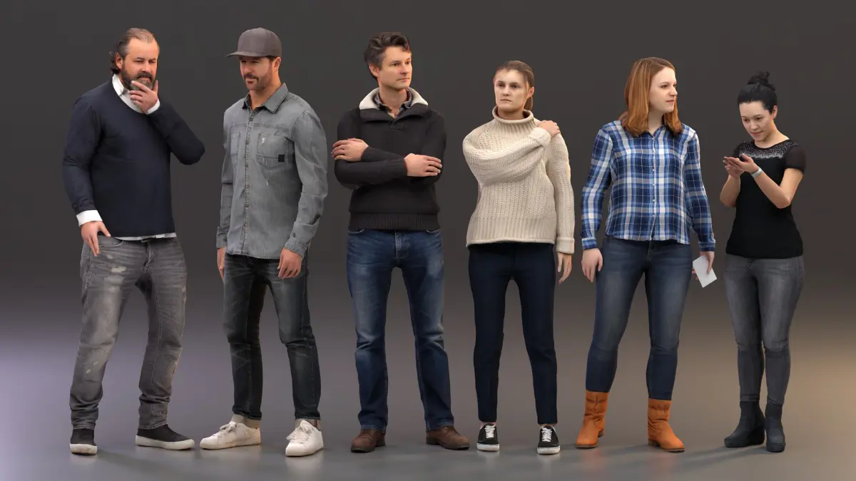- all figures are rigged and contain the original A pose as well as two casual poses each.