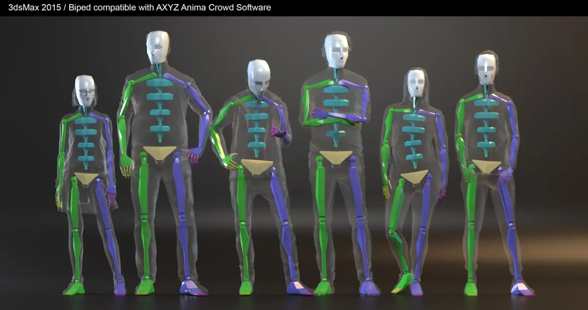 - 3dsMax Bipeds are compatible with AXYZ Anima Crowd Software