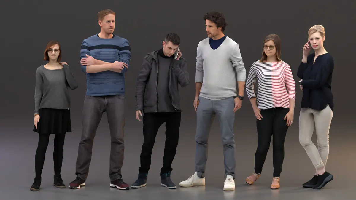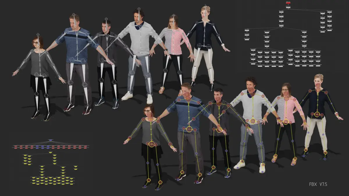 a pack of six different rigged figures with photorealistic textures.