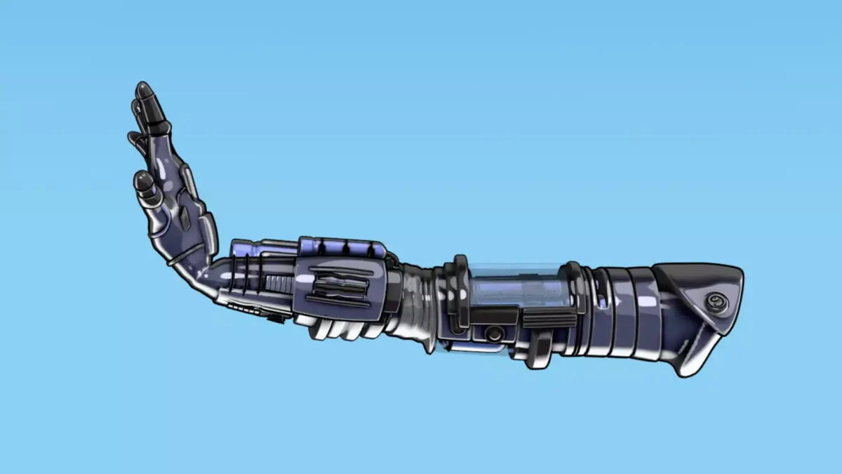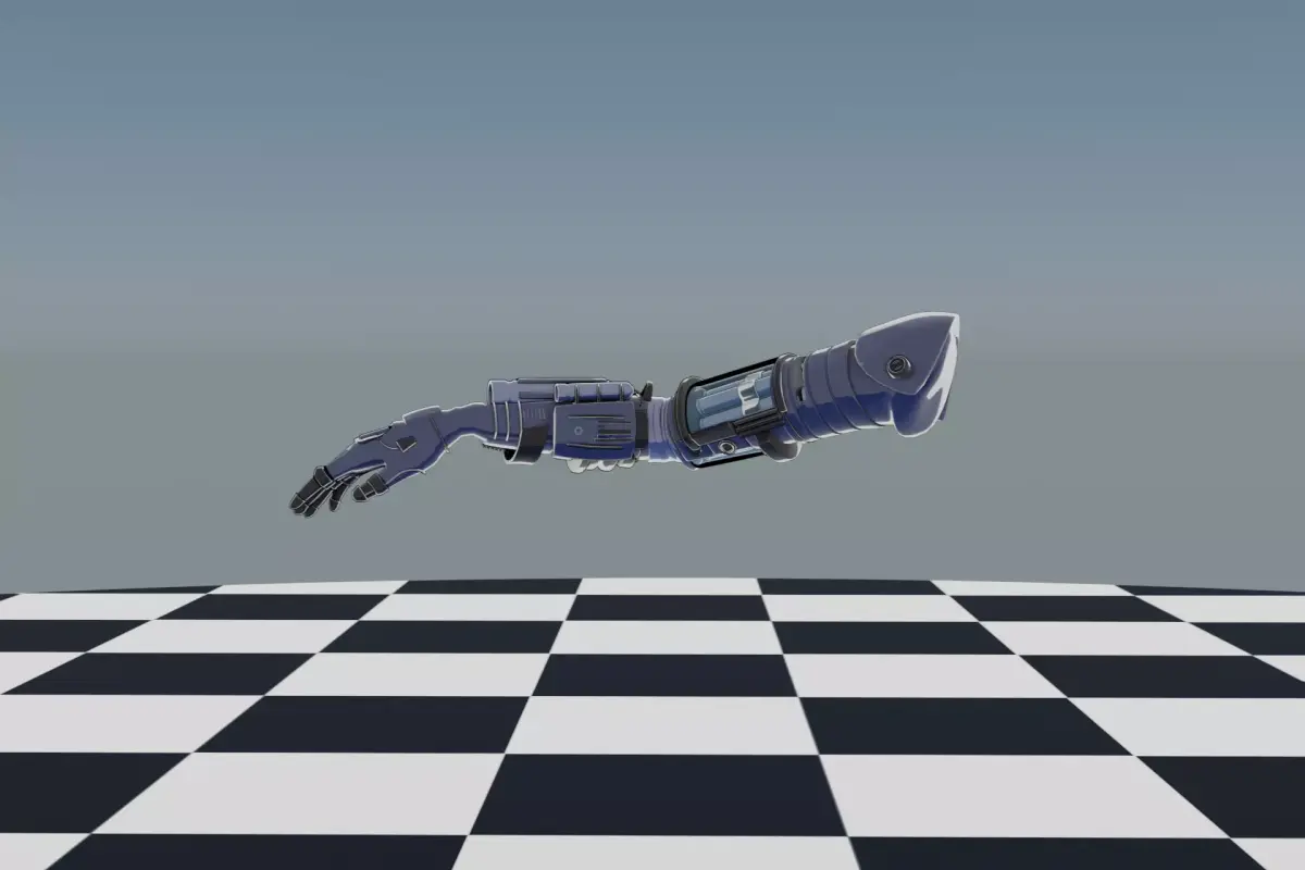 A detailed 3D robotic arm with weapons model, fully rigged for animation and ready for integration into characters, machines, or sci-fi environments. The design combines sleek mechanical plating with articulated joints for realistic movement.