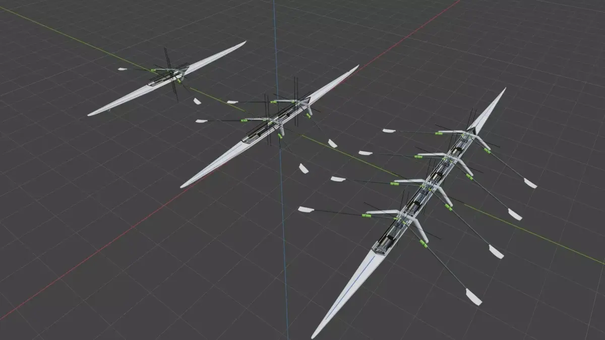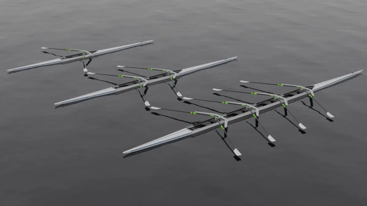 Single scull, double scull, quadruple scull coxless.