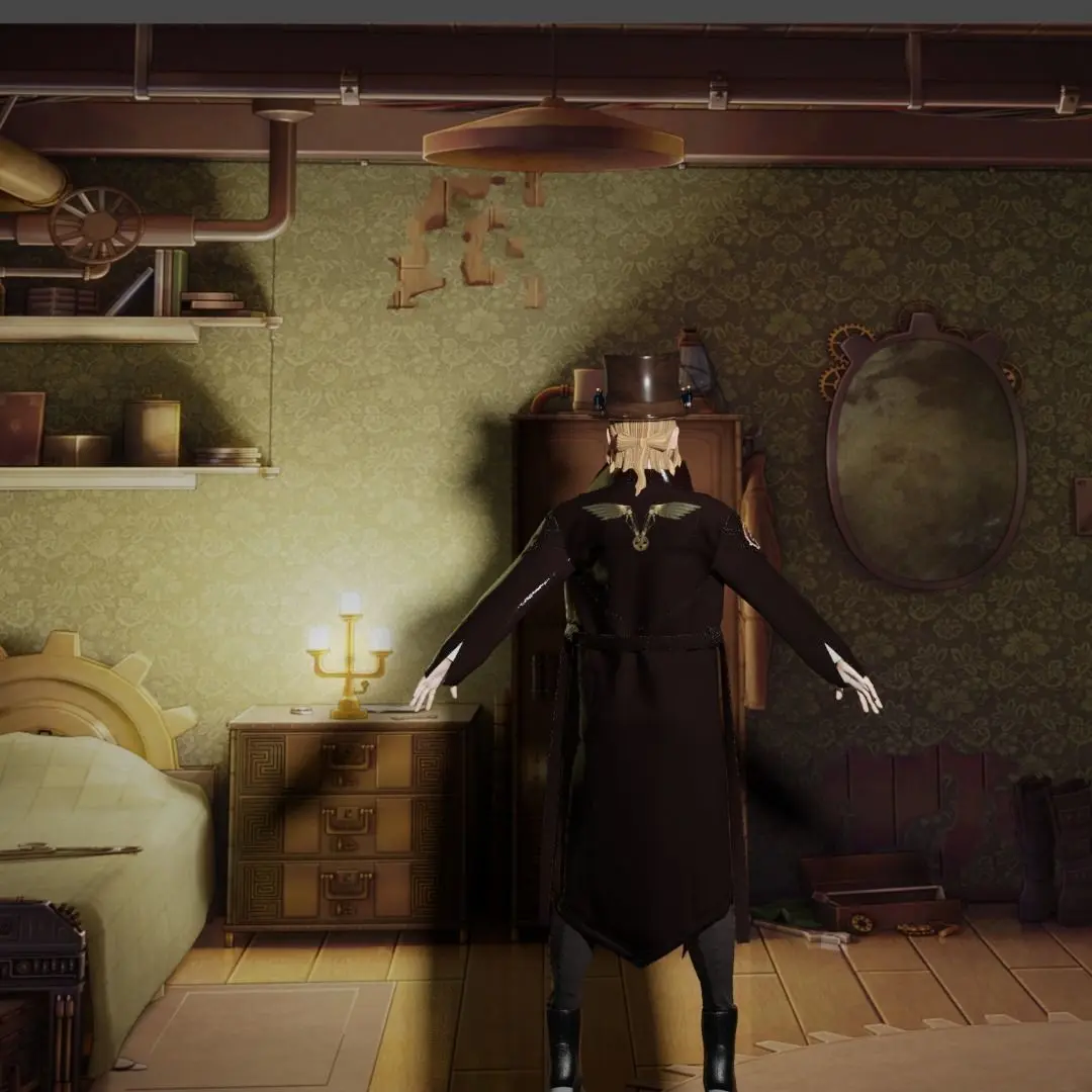 You will find the blender and marvelous designer files with all textures and uvs, also character is rigged with accuRig + face rig. If you will use the simulation of clothes in marvelous designer make sure you're exporting in alembic ogawa format. Face rig made with key shapes. Also the model is rigged with clothes. Also you have a nice scene with zepellin and a flying isle.