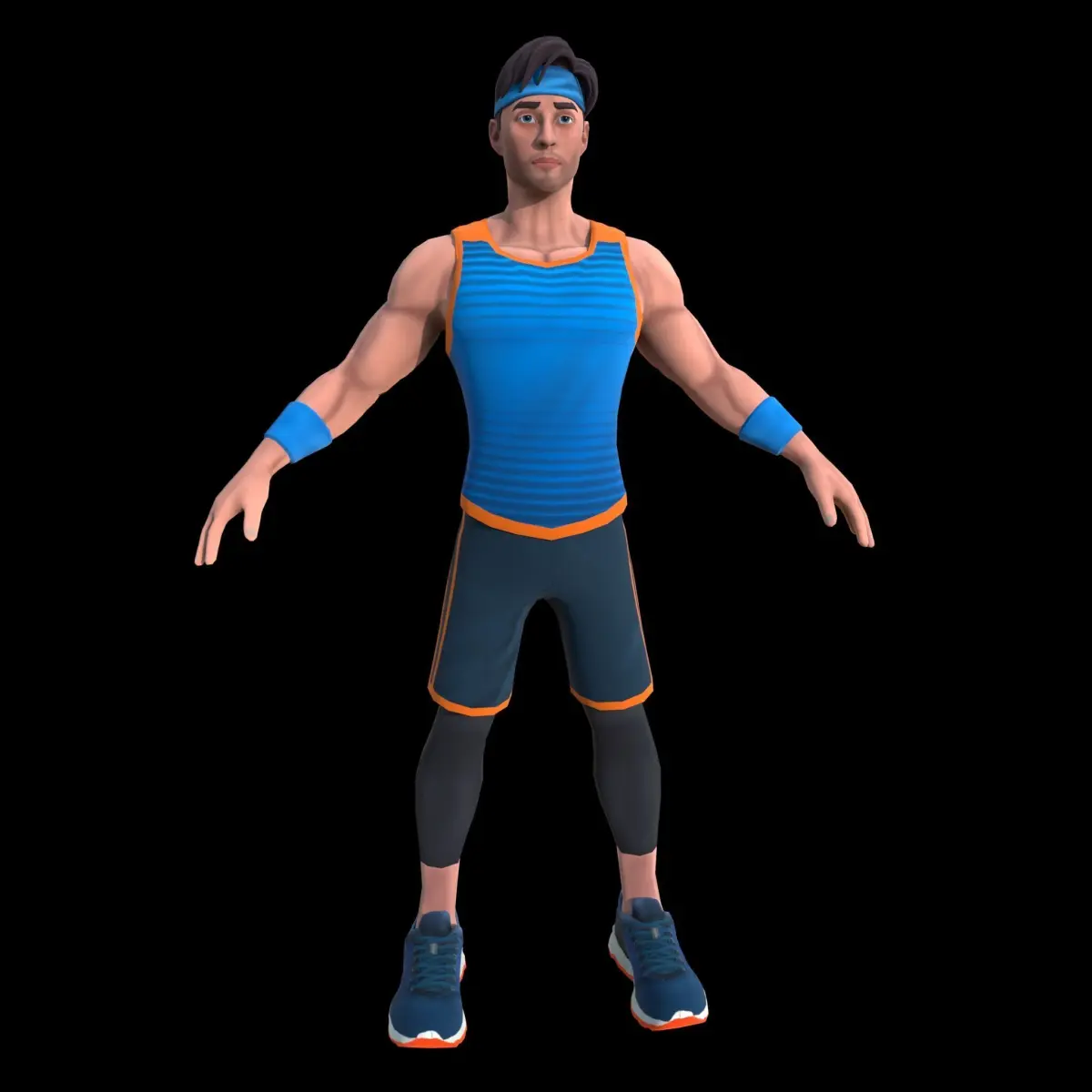 Enhance your game or animation project with this Stylized Sporty Male Character. Designed for high-quality real-time rendering, this character is perfect for sports games, fitness apps, VR/AR experiences, and animated projects. The model features a muscular yet stylized build, a dynamic sports outfit with vibrant blue and orange accents, and a confident athletic stance.