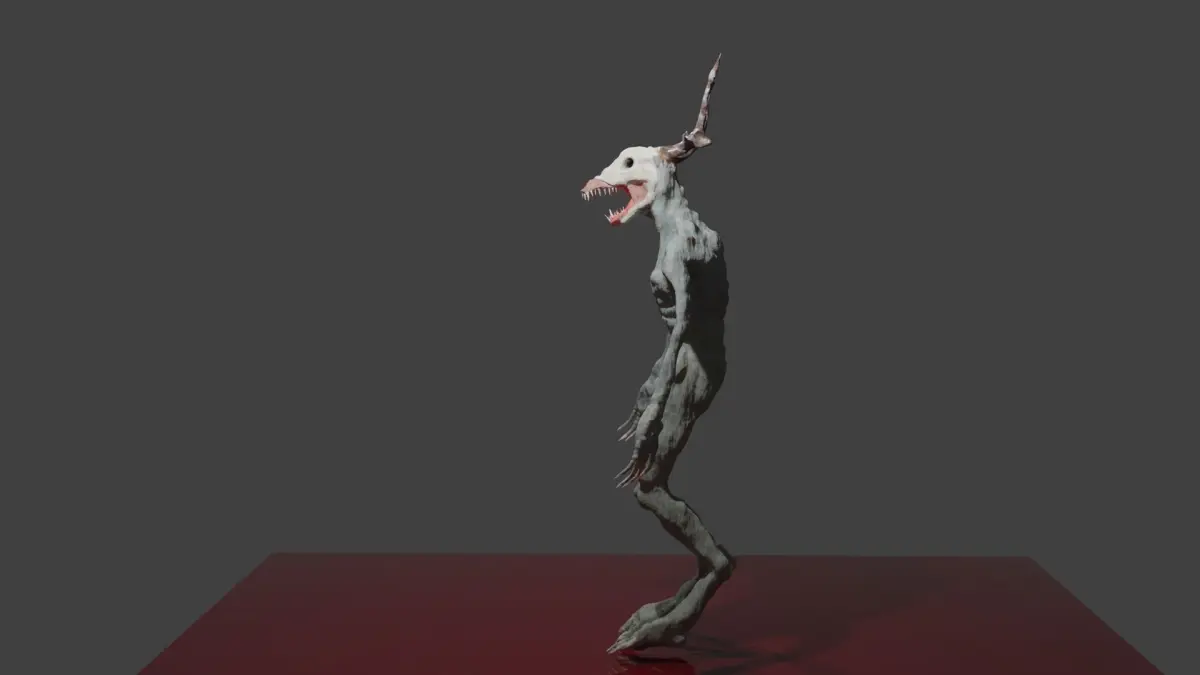 A fully rigged alien/wendigo character model. It is animation ready and can be used for VFX or animation. It is easy to animate with a simple weight painted bone structure. It has a multries modifyer on it so you can animate with low poly and have it high detailed in the render. The wendigo was sculpted, retopologiesed, textured, added hair, rigged it and is ready for animation. I made an account specifically for this model as I think it is to a good standard. For the texture it was UV unwrapped and then texture painted. I am using it for my own short film but I thought it would be good to sell it so you dont have to do the long task of making a charcter from scratch yourself as it takes a very long time. The bones are relativly simple with Inverse kinematics that have been weight painted. At 124 samples the wendigo itself can render around 20 seconds in most circumstances. The model has sub surface scattering in order to add to the realism in renders, works really well with a HDRI. the animations I made for the preview aren't great as I am not much of an animator but in the hands of someone with more animation experience it would turn out really well I think.
