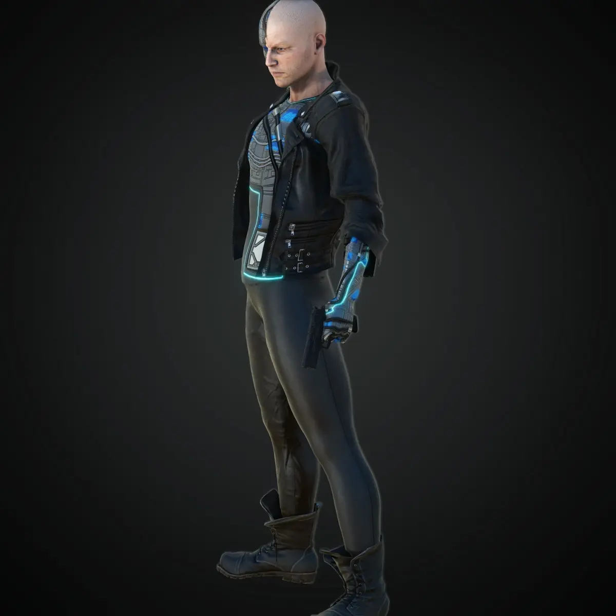 This is a high-quality 3D model of a cyberpunk character, fully rigged and animated for use in video games, cinematics, and immersive real-time experiences. Whether it's for a dystopian RPG, action-adventure game, or futuristic simulation, this asset brings your world to life with style and detail.The character features clean and optimized topology, ensuring efficient performance in game engines like Unreal Engine and Unity. It includes a standard humanoid rig compatible with most animation systems and comes with pre-baked animations (idle, walk, and combat-ready poses).All textures are PBR-ready, with non-overlapping UVs for easy customization. The asset is delivered in multiple formats and is ready for immediate integration—no additional cleanup required. This cyberpunk character is ideal as a hero, antagonist, or NPC in any futuristic or sci-fi setting.
