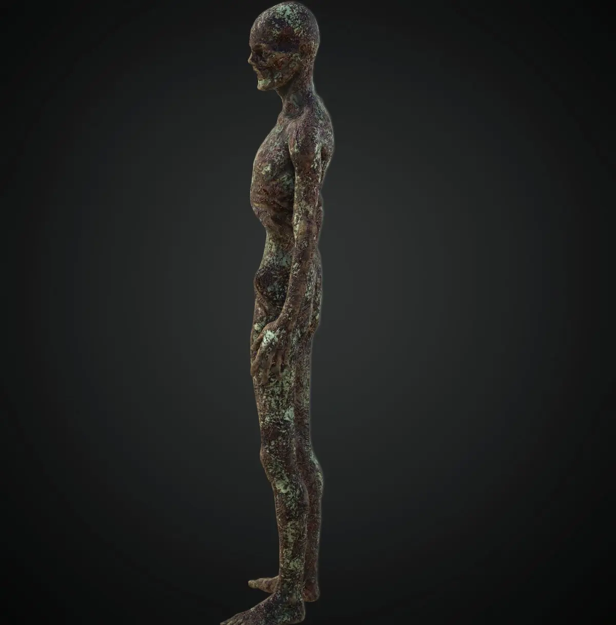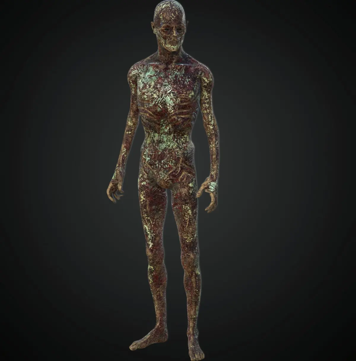 This 3D zombie character features a grotesque, decayed appearance with detailed textures and a menacing pose, ideal for horror, survival, or post-apocalyptic games. Wrapped in dirty bandages and showing signs of decomposition, the model brings a terrifying presence to any scene.