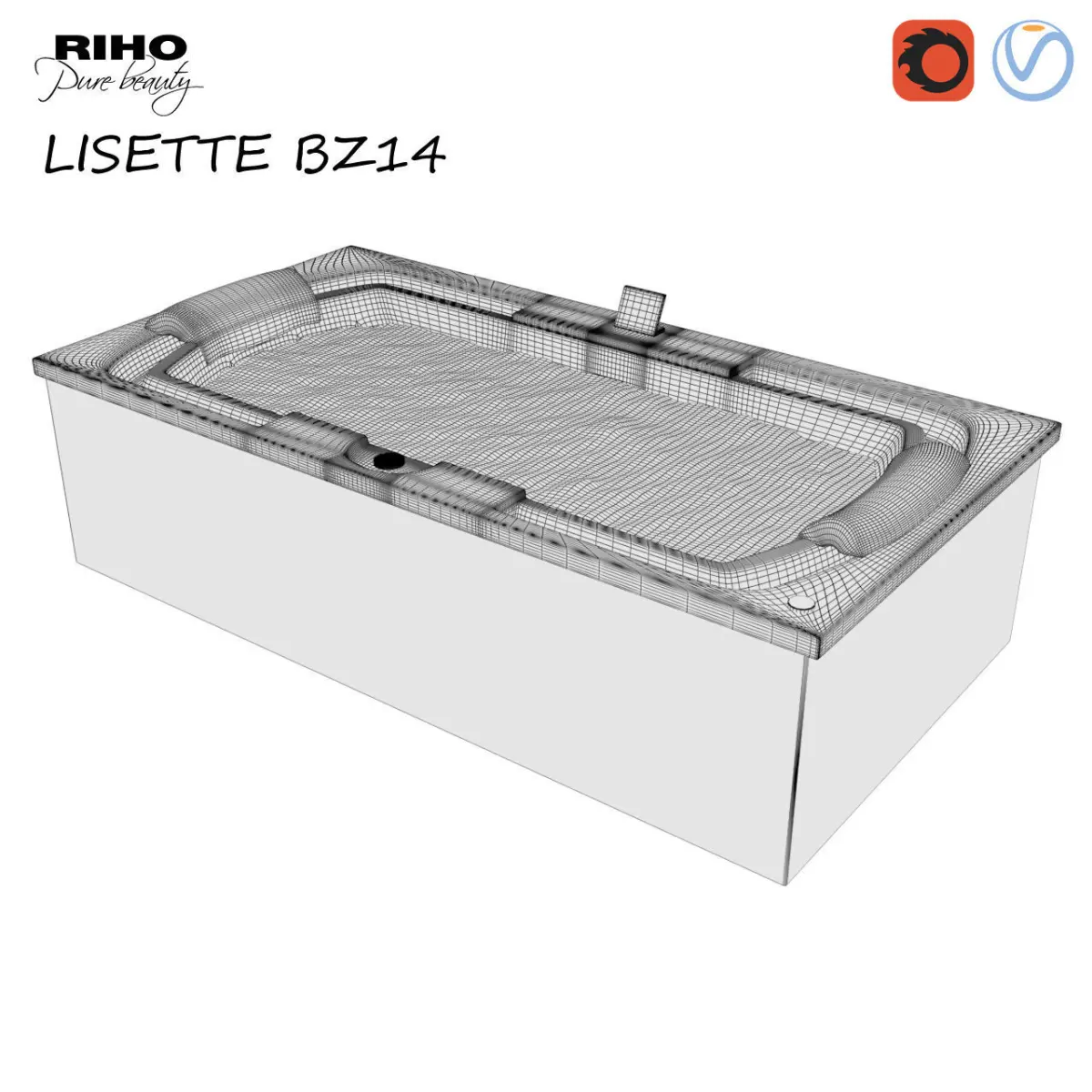 3D model of RIHO Lisette BZ14 bathtub Dimensions W105 x L 195 x H51,5