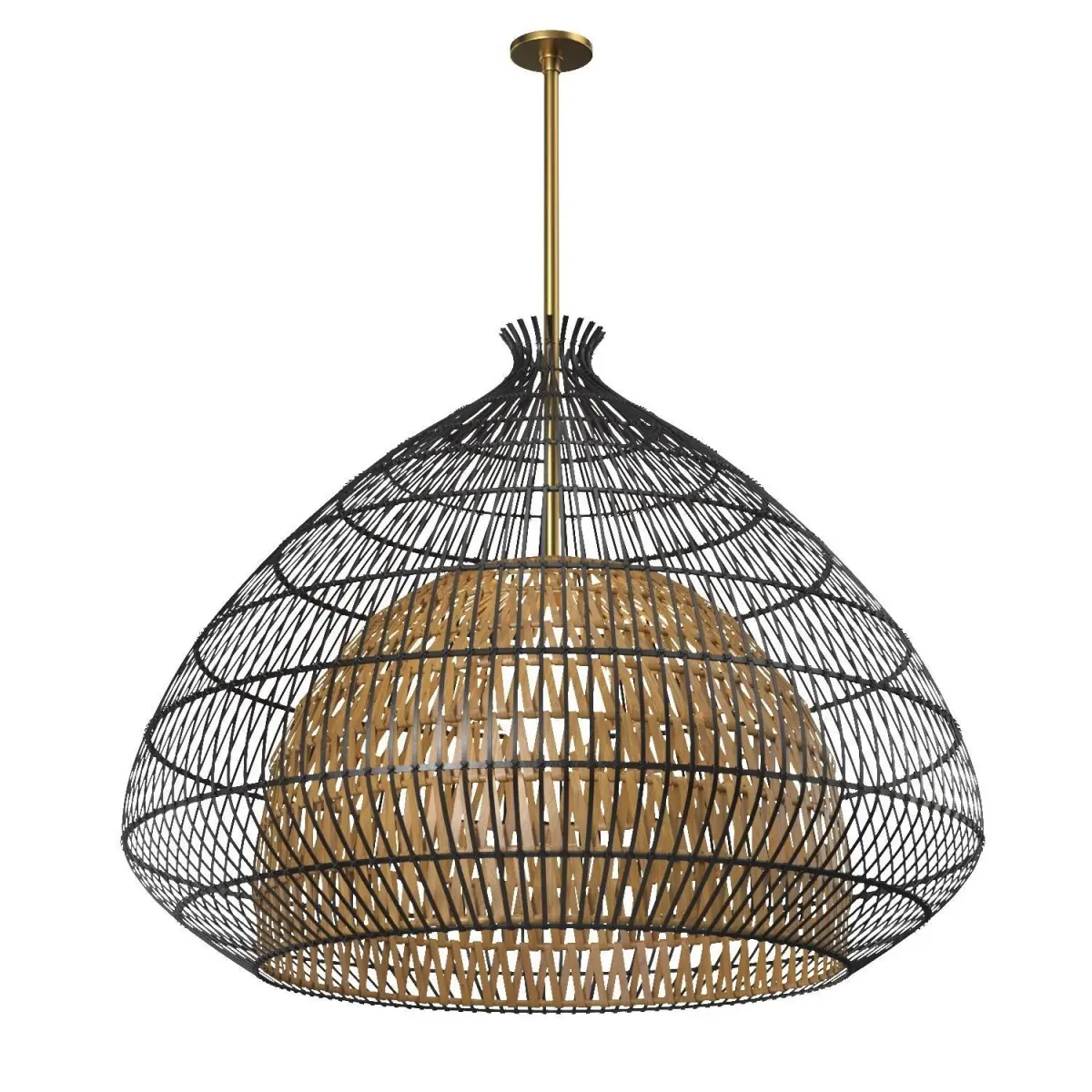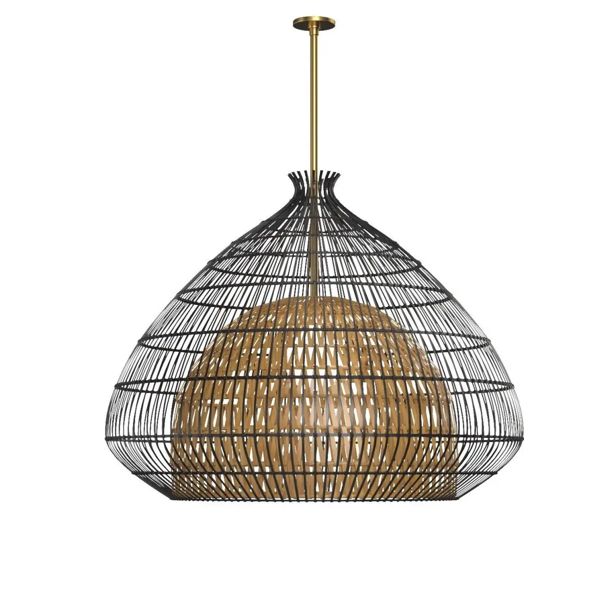 Wicker Bamboo Rattan Pendent Light Model, Black