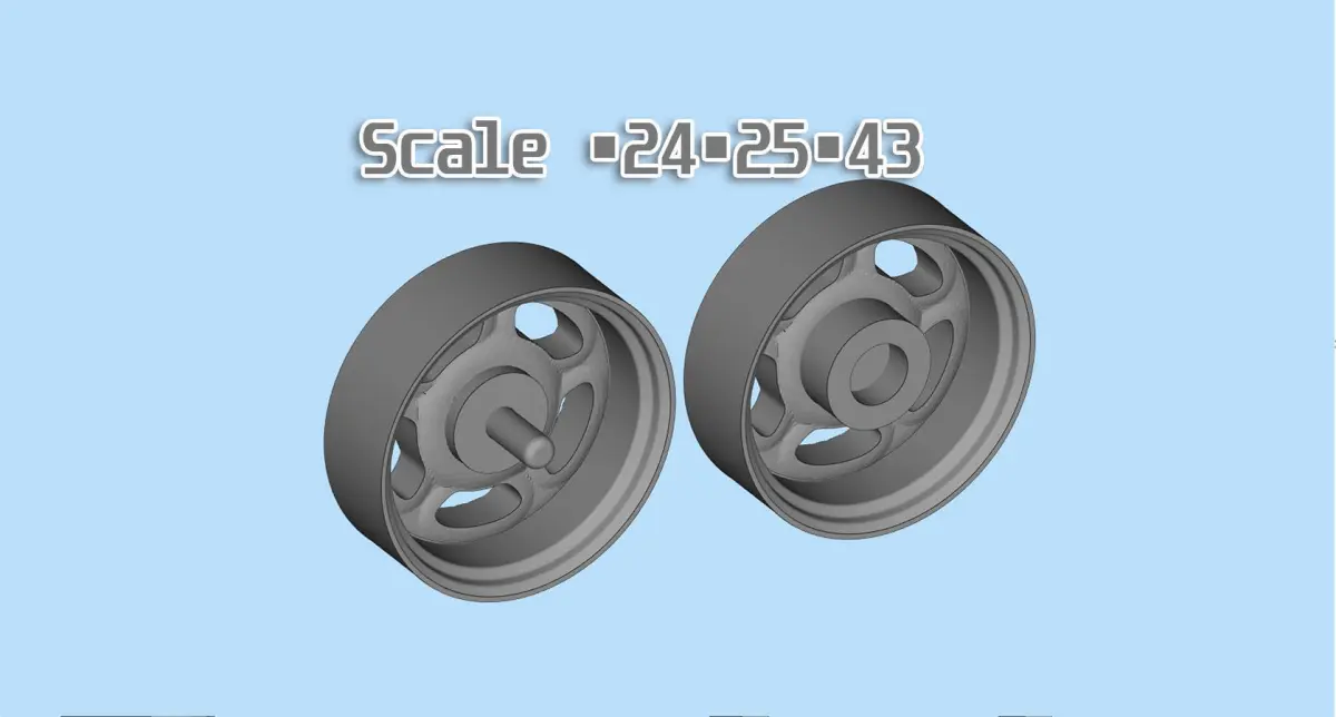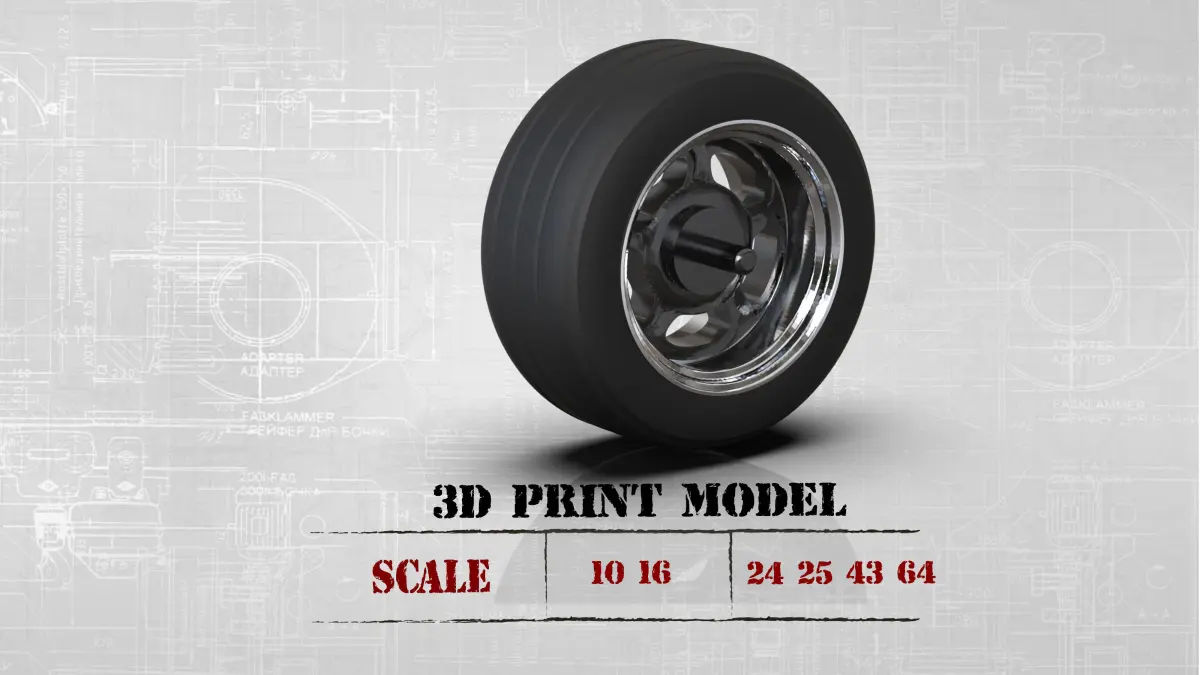 The *.stl files are in the *.zip archive. -Rims (21 mm 19 inches in 1/24 scale)-Tire (31 mm 30 inches in 1/24 scale)