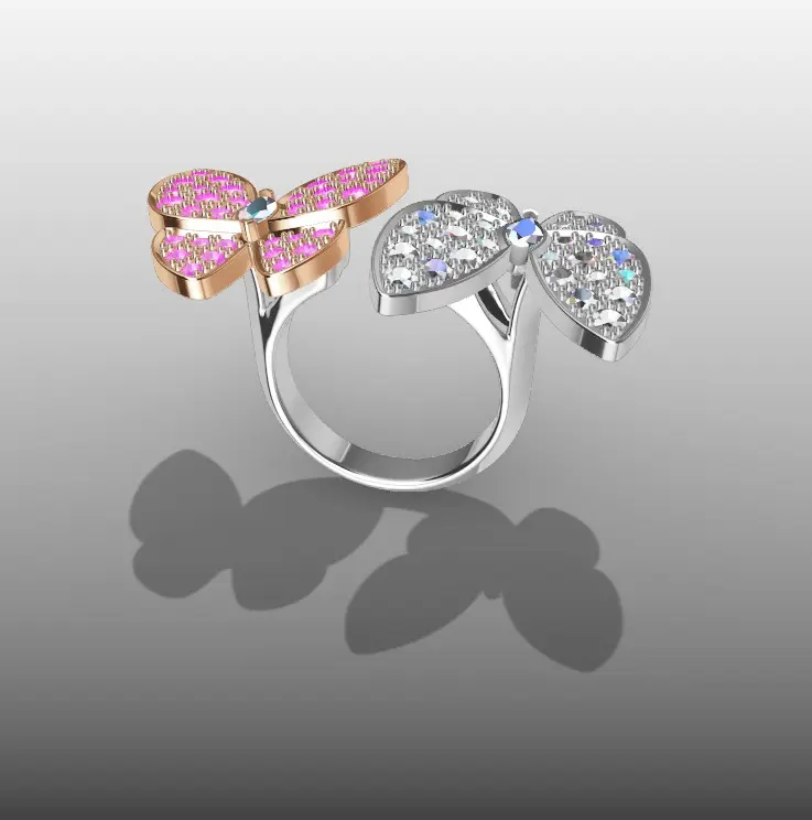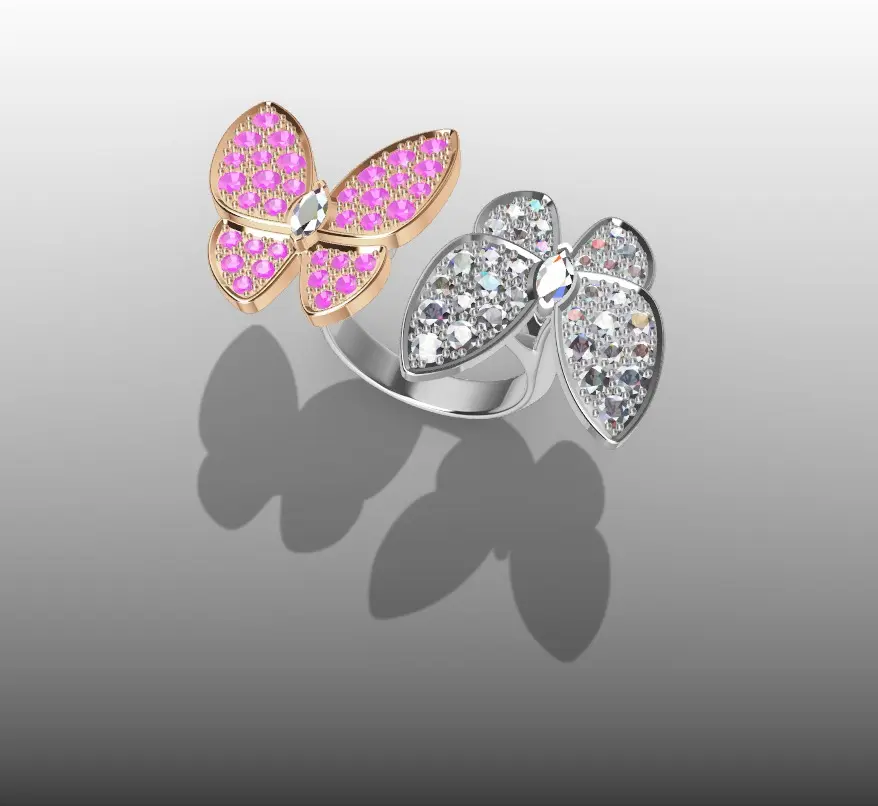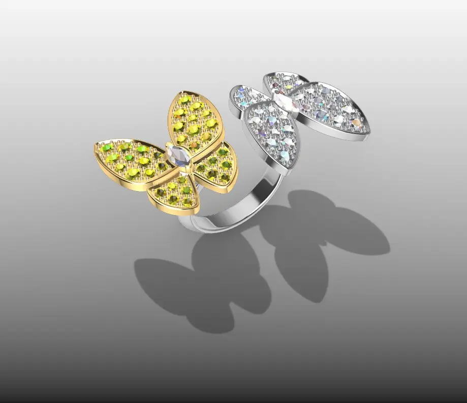 Van Cleef. Two Butterfly Between the Finger ring.Gemstones parameters: Diamond round 2.2mm - 24un. / 1.7mm - 32un. / 1.5mm-12un. / Diamond marquise - 5mm*2.5mm - 2un.
