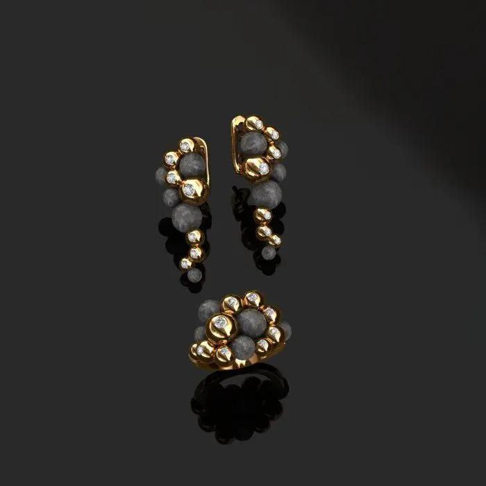 This is a 3D printed ring and earrings model. Stone parameters are shown in the picture. Exported file with extension (.3dm). If you have any problem, please contact me. Thanks.