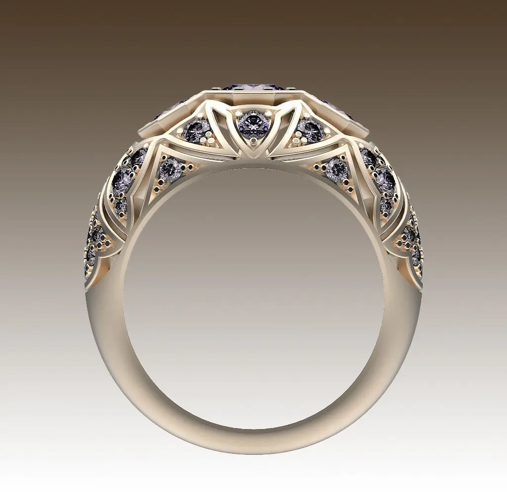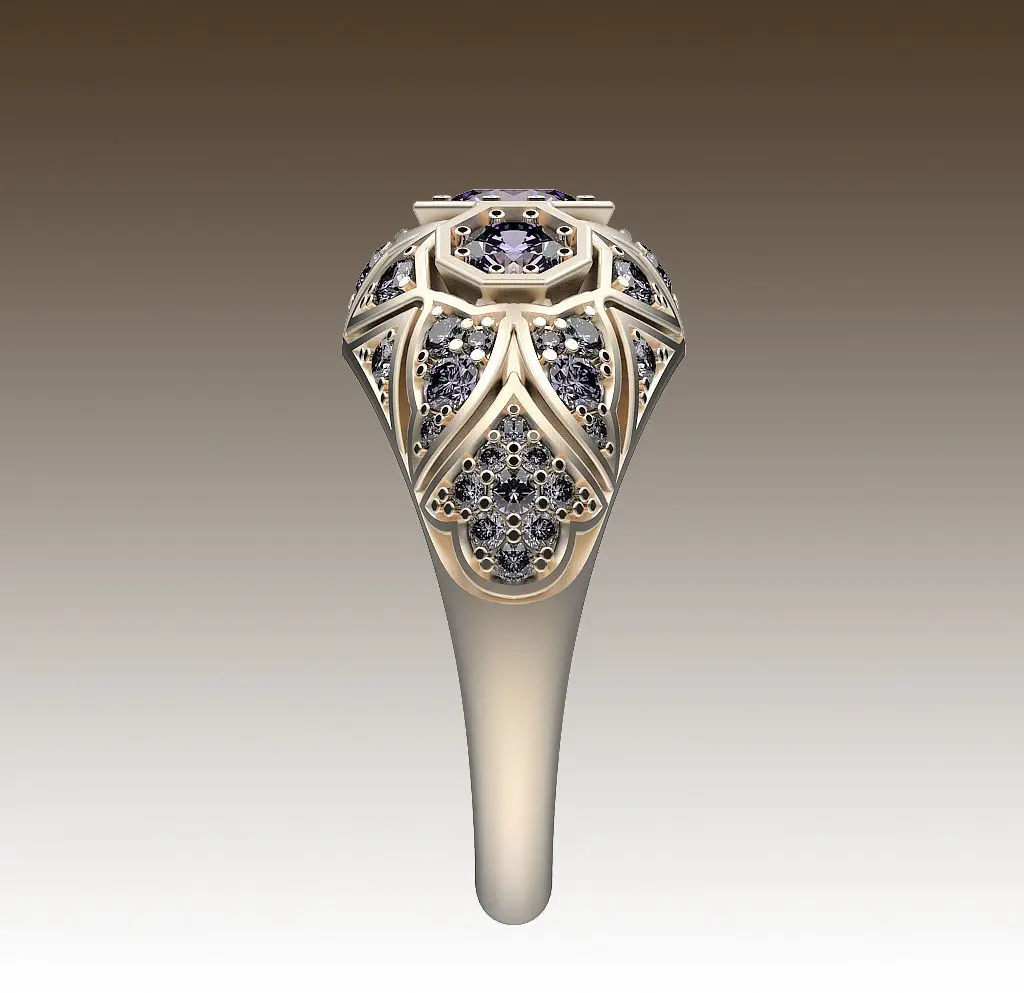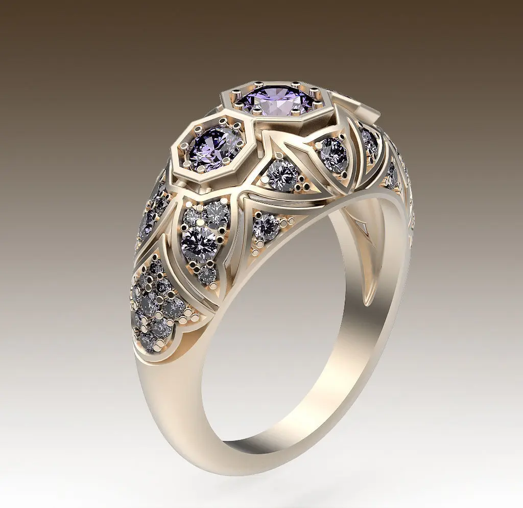 A ring of antique design, strewn with large and small stones, for lovers of antiquity and classics.