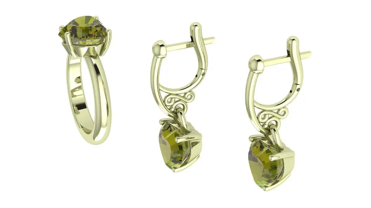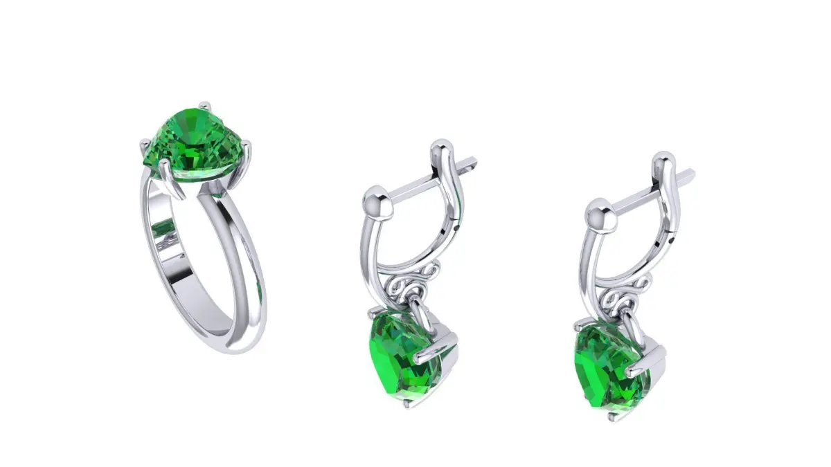 Exciting heart.An elegant set of a ring and earrings, with a minimal set of decorative elements and with a light construction. The ring consists of one piece, and the earring consists of three parts: an English lock of two parts and a frame for a stone. All products are fitted with a heart-shaped stone with a size of 12mm x 12mm. The original design allows you to improvise with a choice of metal and its color, as well as with a choice of precious and semiprecious stones and their color. The model is presented in the STL and OBJ formats and is ready for printing.