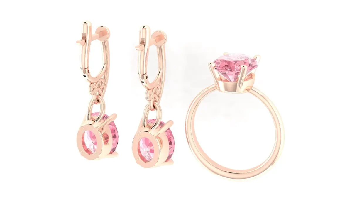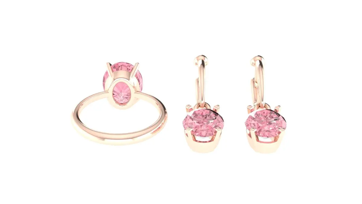 An elegant set of a ring and earrings, with a minimal set of decorative elements and with a light construction. The ring consists of one piece, and the earring consists of three parts: an English lock of two parts and a frame for a stone. All products are fitted with a oval-shaped stone with a size of 12mm x 10mm. The original design allows you to improvise with a choice of metal and its color, as well as with a choice of precious and semiprecious stones and their color. The model is presented in the STL and OBJ formats and is ready for printing.