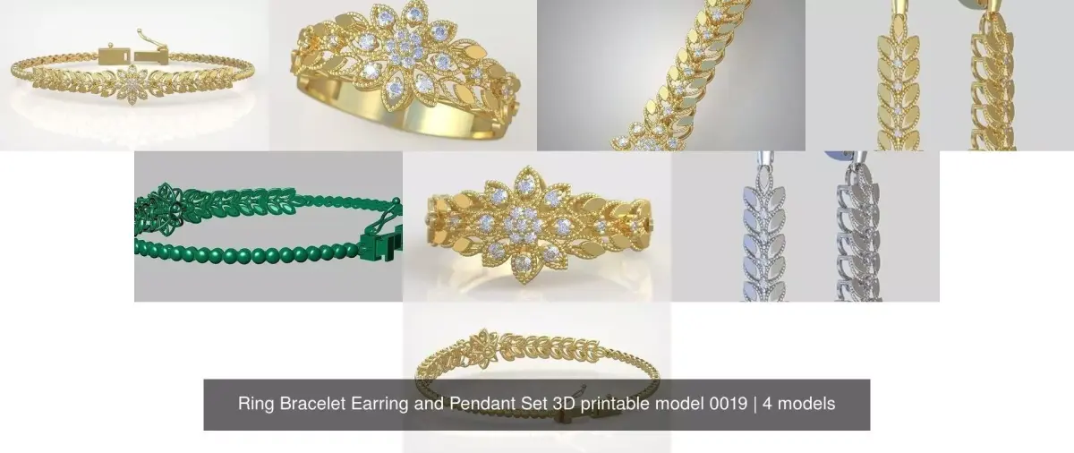 Ring Bracelet Earring and Pendant Set 3D printable model 0019 3D Model Pack