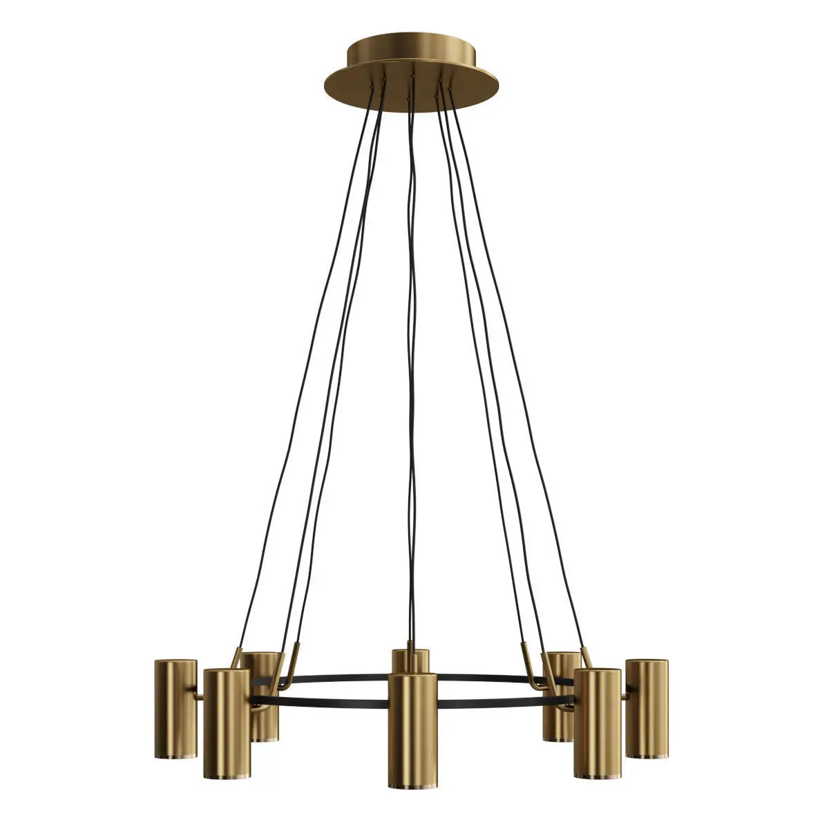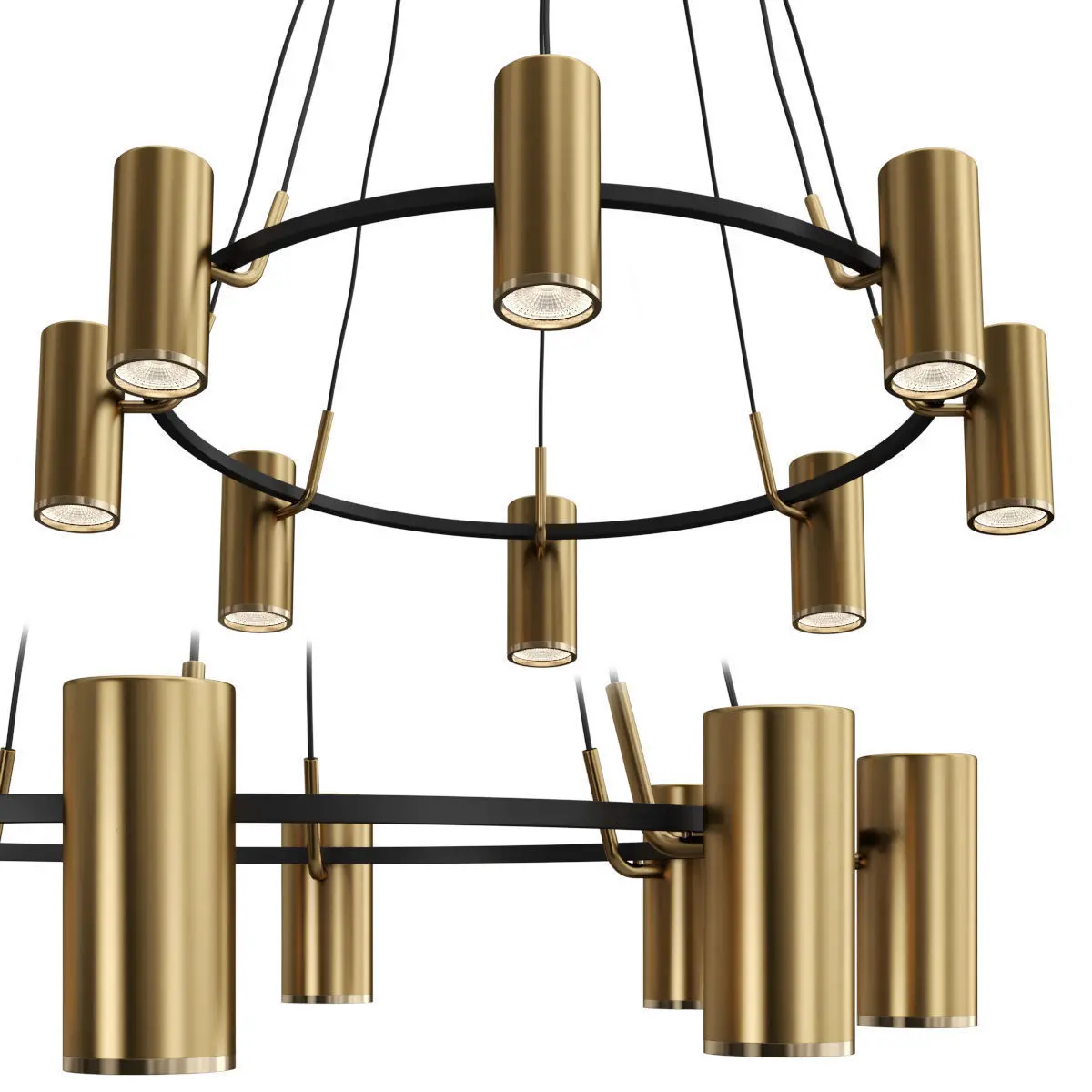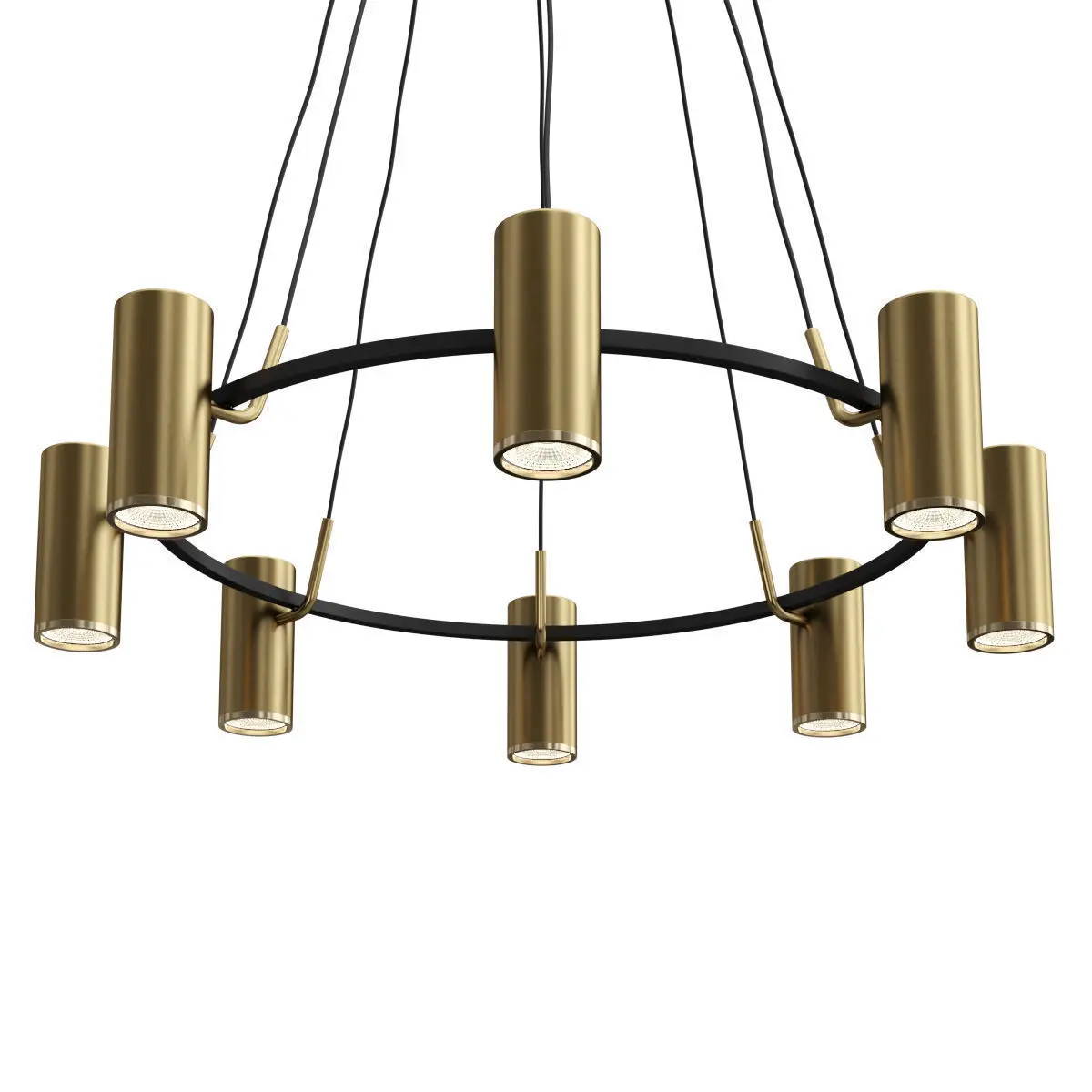 The Ring Chandelier is an exquisite lighting fixture that combines minimalism and elegance in a circular design. Crafted from high-quality brass with a sleek black finish, this chandelier exudes sophistication and modernity. The metal frame is not just a structural element but also a design feature, with its refined brass tone contrasting beautifully with the black accents, creating a subtle yet striking visual effect.