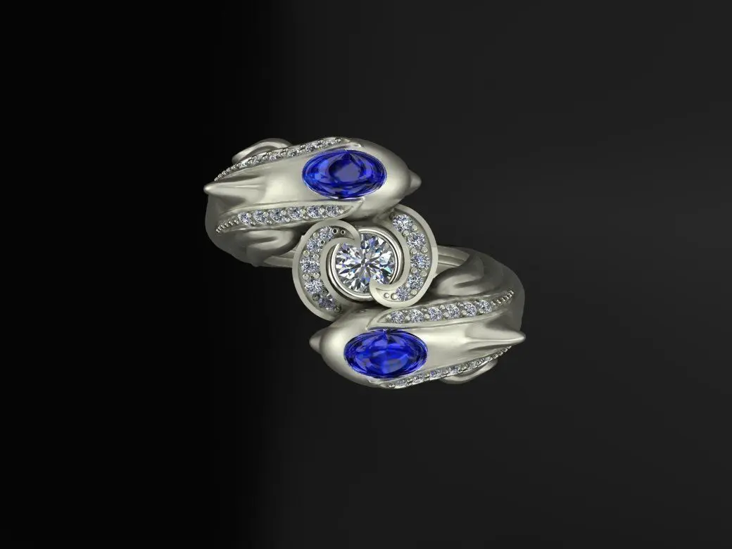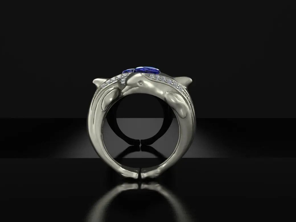 Ring with Dolphins and diamonds, , Recommended material - white GOLD Any questions? Please contact me. Thank you!