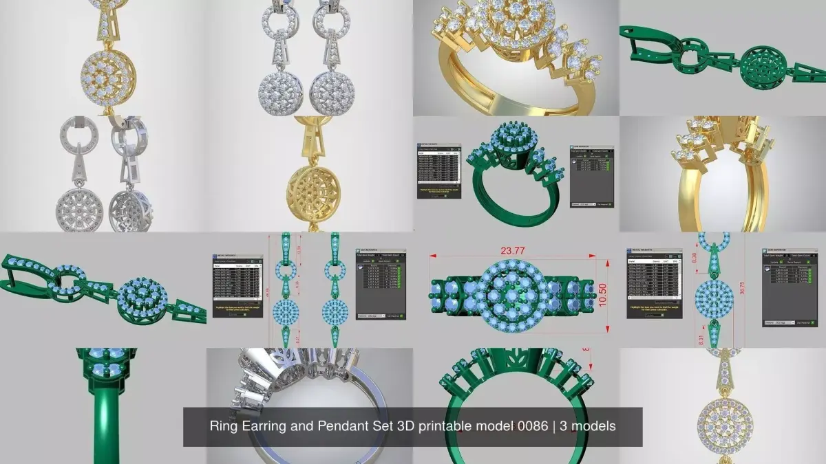 Ring Earring and Pendant Set 3D printable model 0086 3D Model Pack