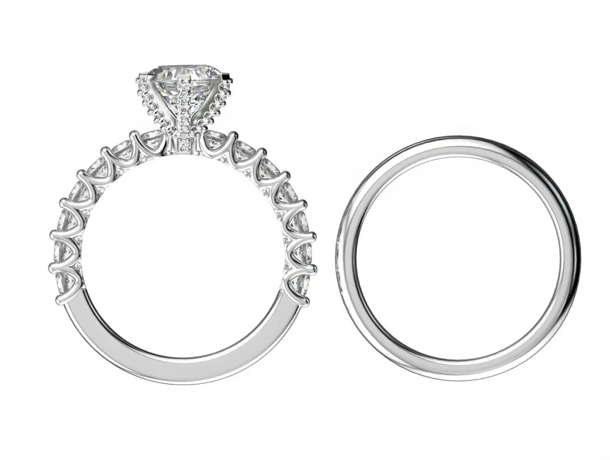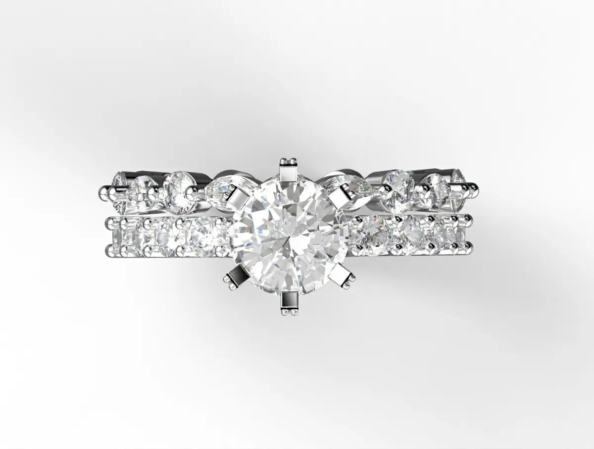 stones in the model : first ring : 7.0 mm - 1 pieces, 2.5 mm - 14 pieces, 0.9 mm - 38 pieces. three rings: 2.5 mm - 9 pieces, marquise 4.0*2.2 mm - 9 piecesFile format: STL