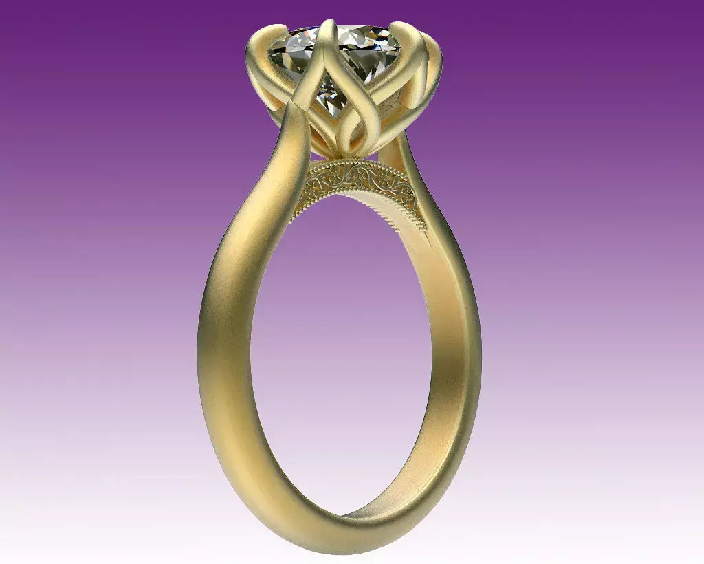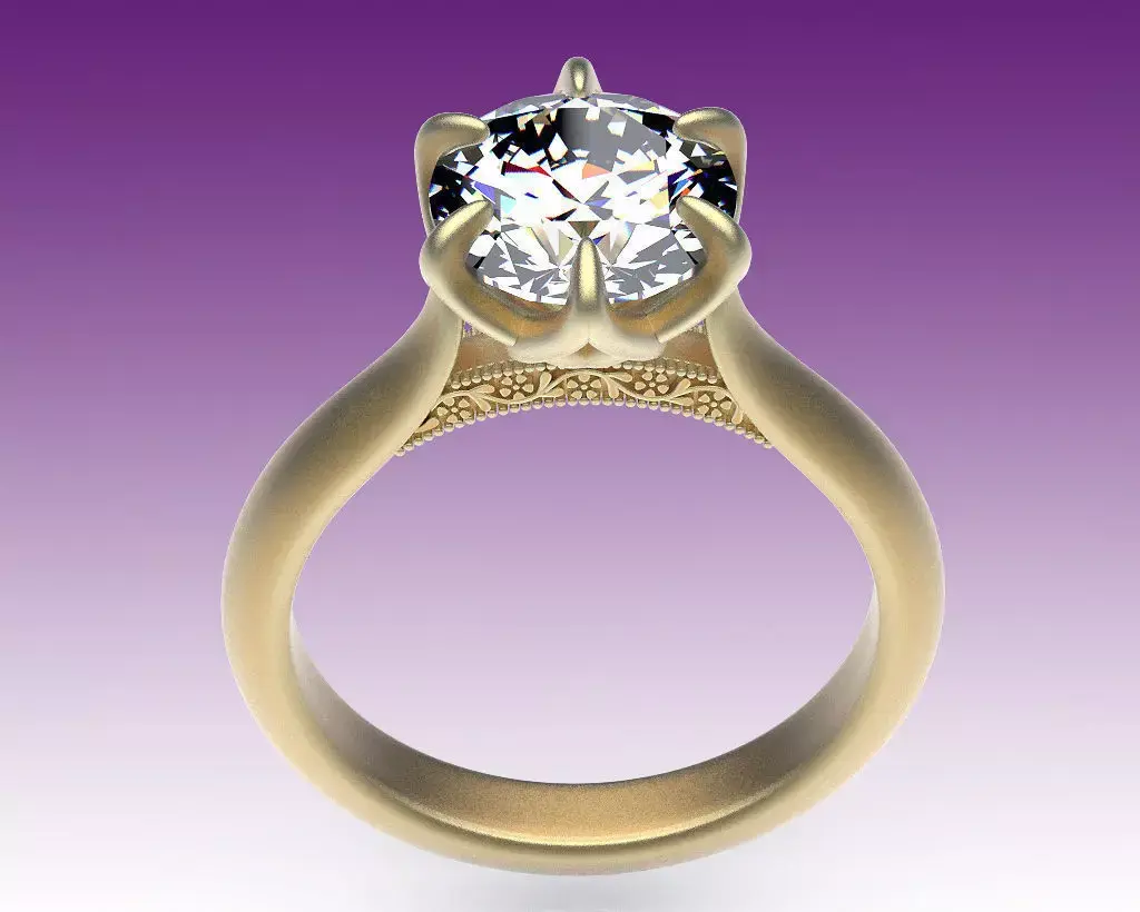 Classic engagement ring with floral design elements on the shank