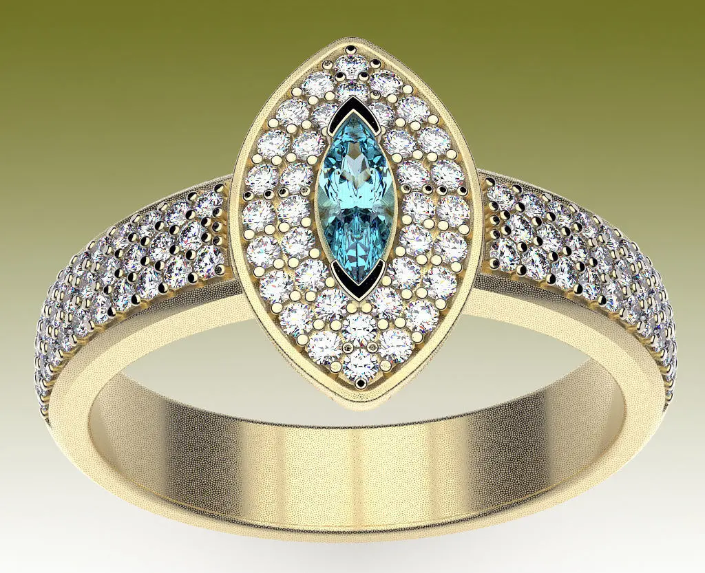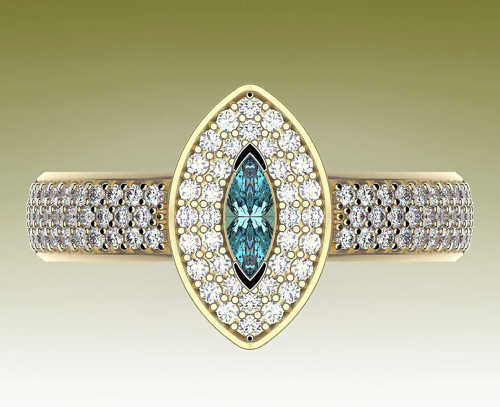 Cocktail ring with marquise-cut center stone and diamond halo