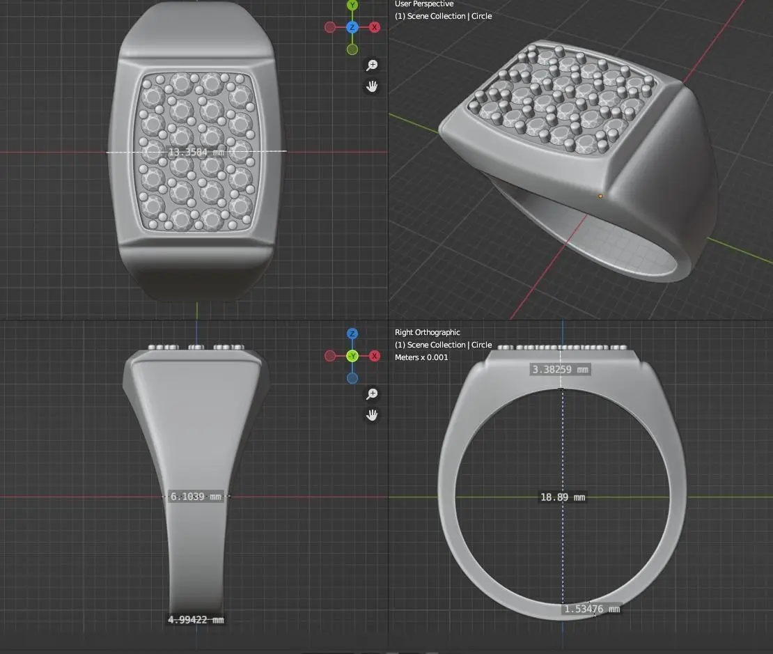 This is ready for printing or milling ring. You can see all the parameters of this ring in the screenshot. There are only metalpart in .STL file. The file .STL is completely prepared for printing on the 3d-printer, the model has no mistakes and checked in the program Materialise Magics.