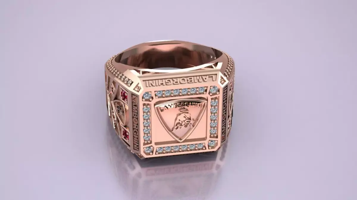 Embrace the spirit of innovation and luxury with this exquisite ring. Featuring a Raging Bull crest prominently displayed, surrounded by brilliant-cut diamonds and subtle rubies, it's a piece for those who appreciate unparalleled craftsmanship and excellence."