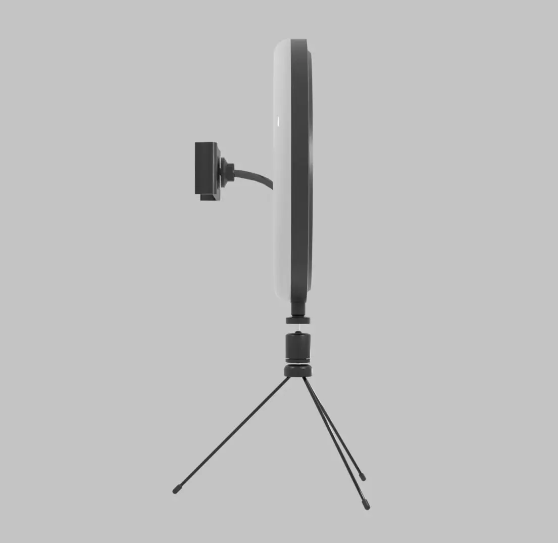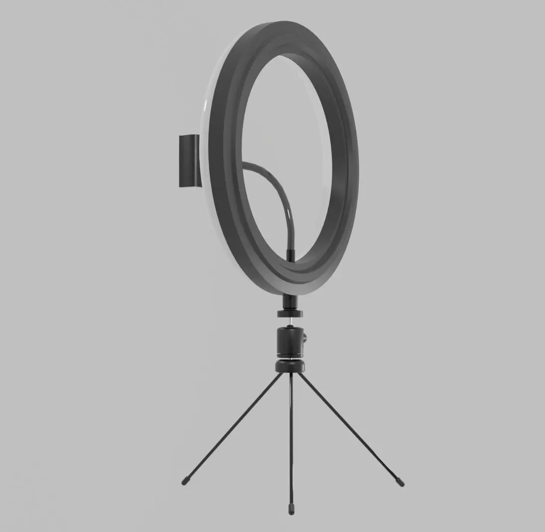 Ring light-phone clip. PBR low-poly game ready.Objects 18Verticles 19.257Edges 37.978Faces 18.714Triangles 38.244functions - fixing the phone and lighting device. Change the brightness and define the hue of the glow. The light of the ring lamp allows you to place accents, and when shooting portraits of large objects, without shadows on the face.