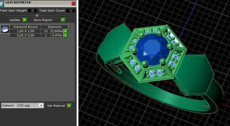 This is nice ring from jewelry Luxury set may be made in gold 14K, silver, platinum or your choice. Ring size 19. The model is adapted to resize under the necessary for you. There are earrings, pendant and bracelet to this ring. This model is designed for 3D printing. The model is available bracing in wax (casting with diamonds).This product went through a full production cycle. It's quality guaranteed.