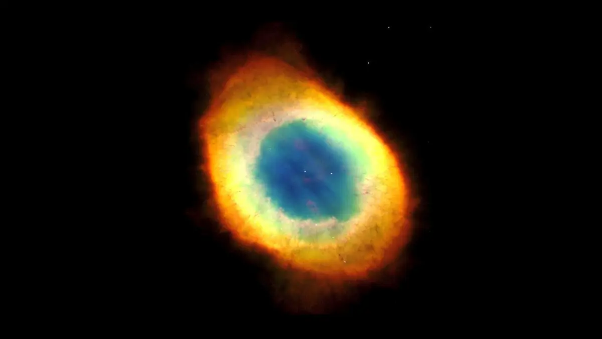 The Ring Nebula (NGC 6720) is a bright, large planetary nebula located 2000 light years from Earth in the constellation Lyra. in the northern constellation of Lyra. With an apparent magnitude of 8.8 and an apparent size of 230x230 arcminutes, the nebula is visible in binoculars and easily observed in small telescopes in good conditions. Its striking appearance has earned it the nickname the Southern Ring Nebula. The Ring Nebula (NGC 6720) is one of the most iconic deep sky objects in the night sky.For astronomy science, extraterrestrial space exploration, space science, space travels, astro exploration science, celestial objects exploring, outer space, astronomy researches, and space exploring promotional projects.