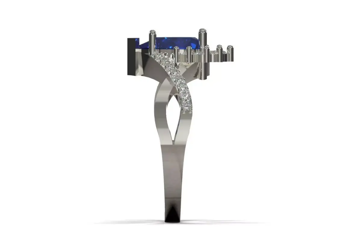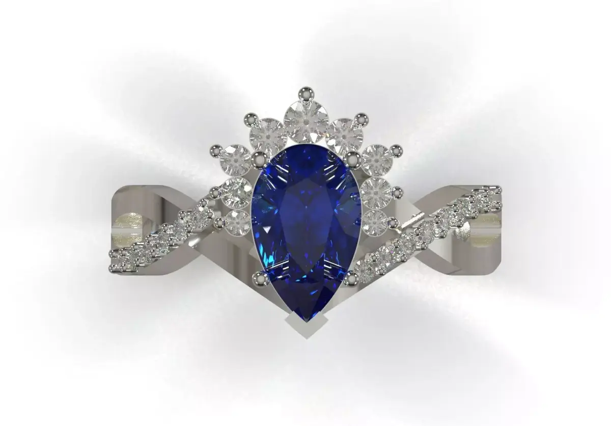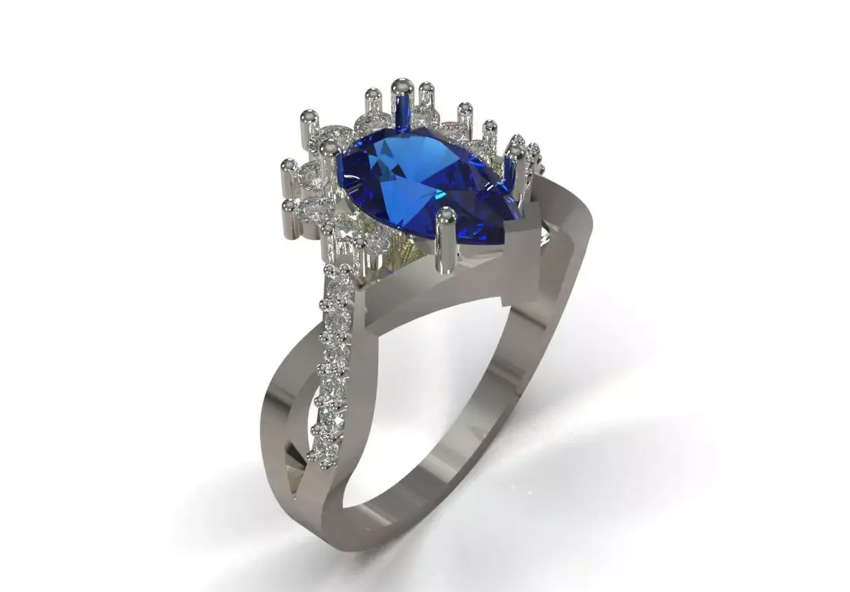 This model is designed with micron precision for precise milling and flawless casting. The main feature of this ring is the use of a Pear Cut center stone and a split shank, which gives a very elongated and beautiful effect to the fingers.
