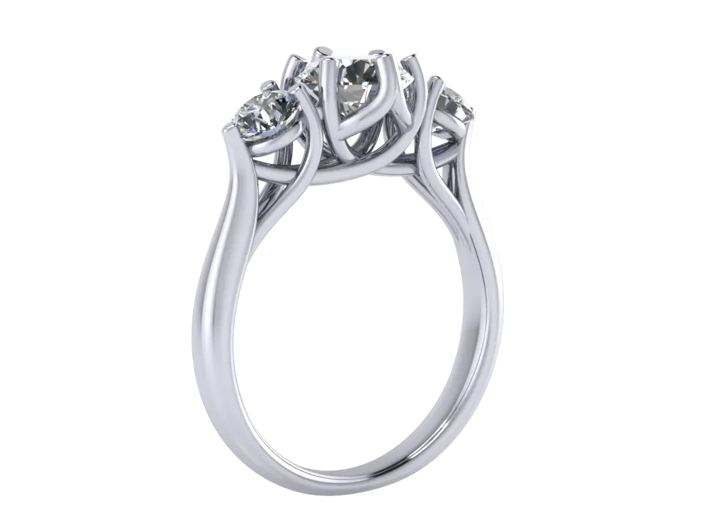 1 Diamond Round 6.5 mm X 6.5 mm 2 Diamond Round 4.3 mm X 4.3 mm Ring rail size US 6 Ring Gold 18 kt weight 4.45 gr.Diamonds and other stones are not included in model.