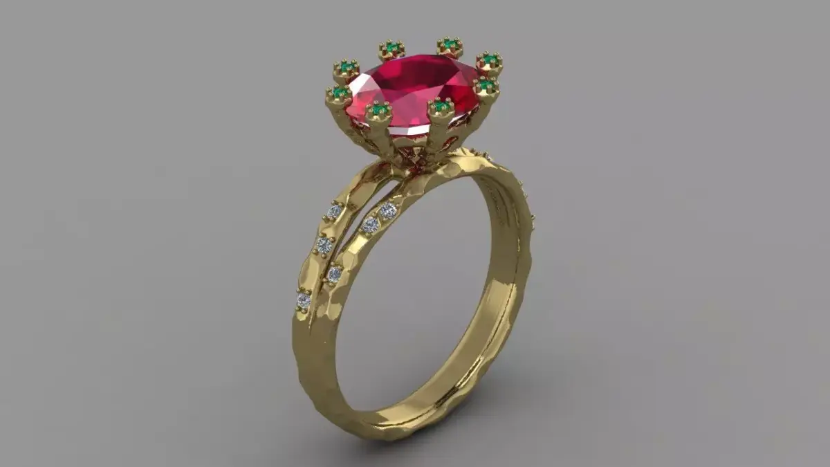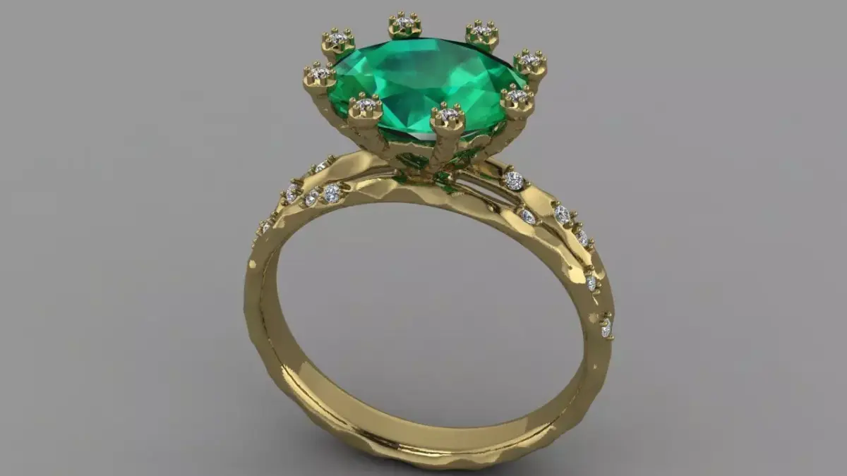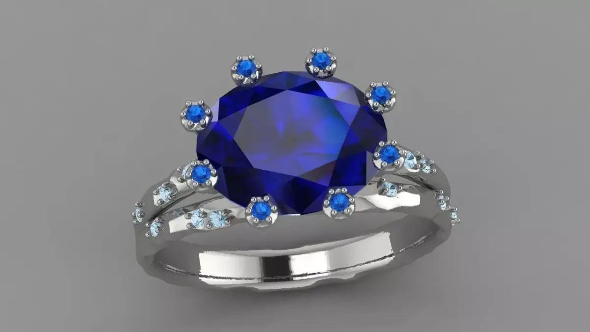 A charming ring that looks like a stone flower. With a large stone in the middle, with a deliberately rough texture that only emphasizes the tenderness and elegant shape of the ring. Size 17mm. Stone 1mm - 20 pieces, oval 10*8 mm - 1 piece. Weight: yellow gold 14 k - 3,36 , silver - 2,7.