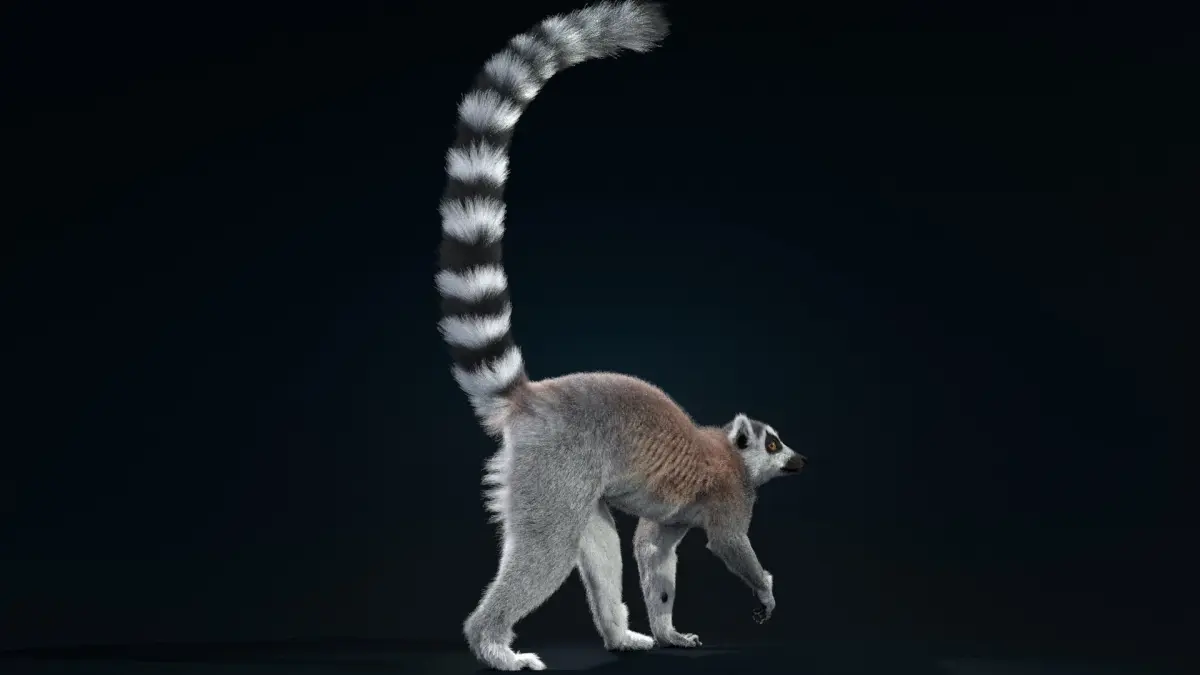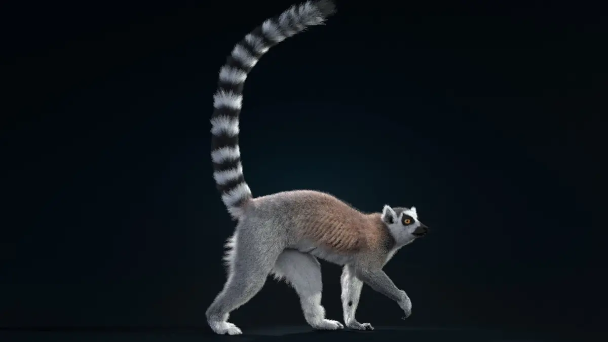 This is a realistic lemur catta model, with textures, animation, rigging, fur, multiple 4K maps in UDIM format to add more details. Skin maps are made separately to enhance realism. The model is completely made with Blender and Cycles renderer at real-world scale.