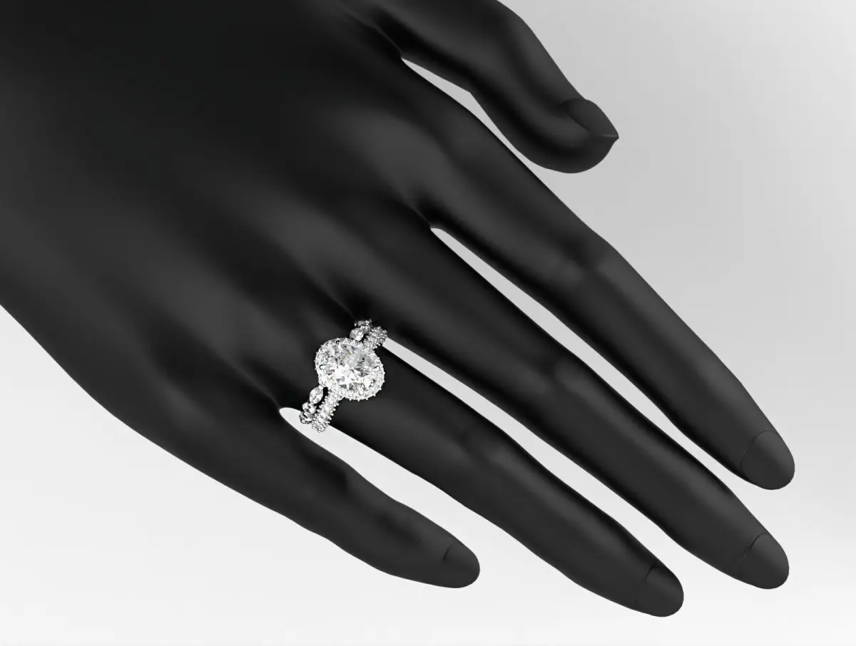 stones in the model : first ring : oval 10,2*7,2 - 1 pieces, 1.5 mm - 18 pieces, 1.2 mm - 90 pieces,0.9 mm - 16 pieces. three rings: 2.5 mm - 9 pieces, marquise 4.0*2.2 mm - 9 pieces