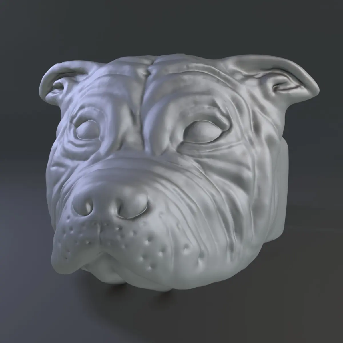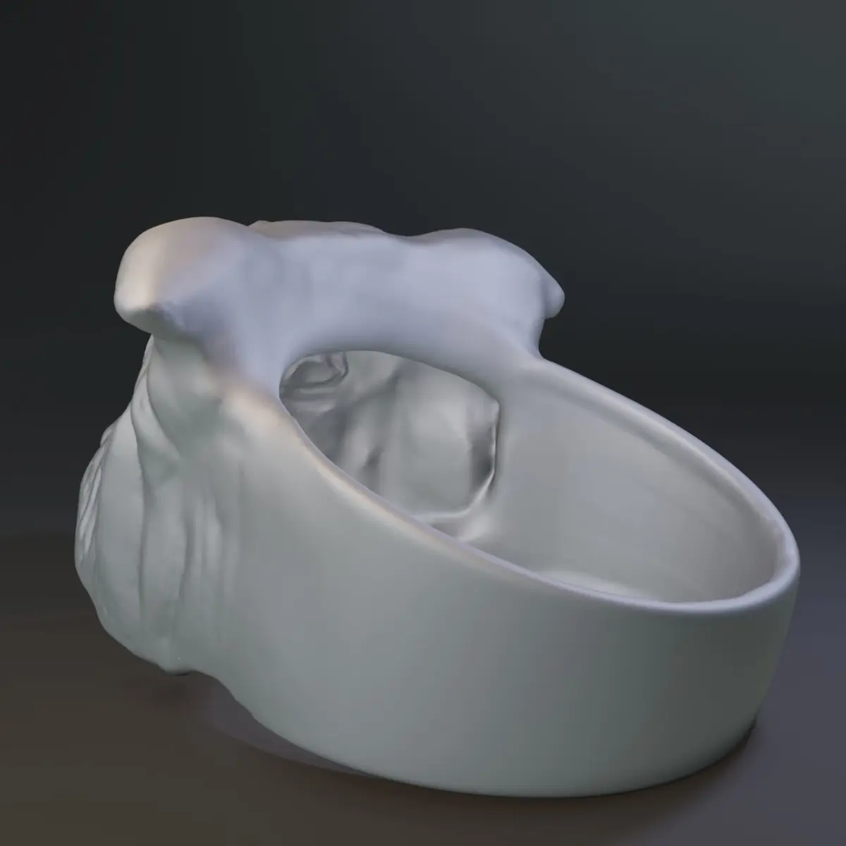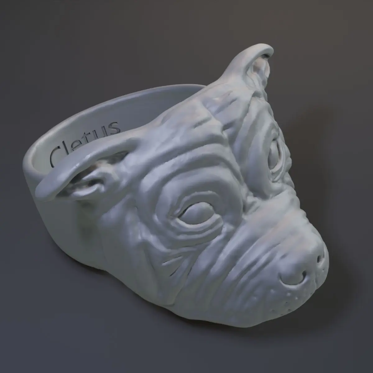 Ring with a dog face, dog breed bulldog.The model is checked by a special addition, there are no breaks and intersections in the grid. The model is ready for printing.