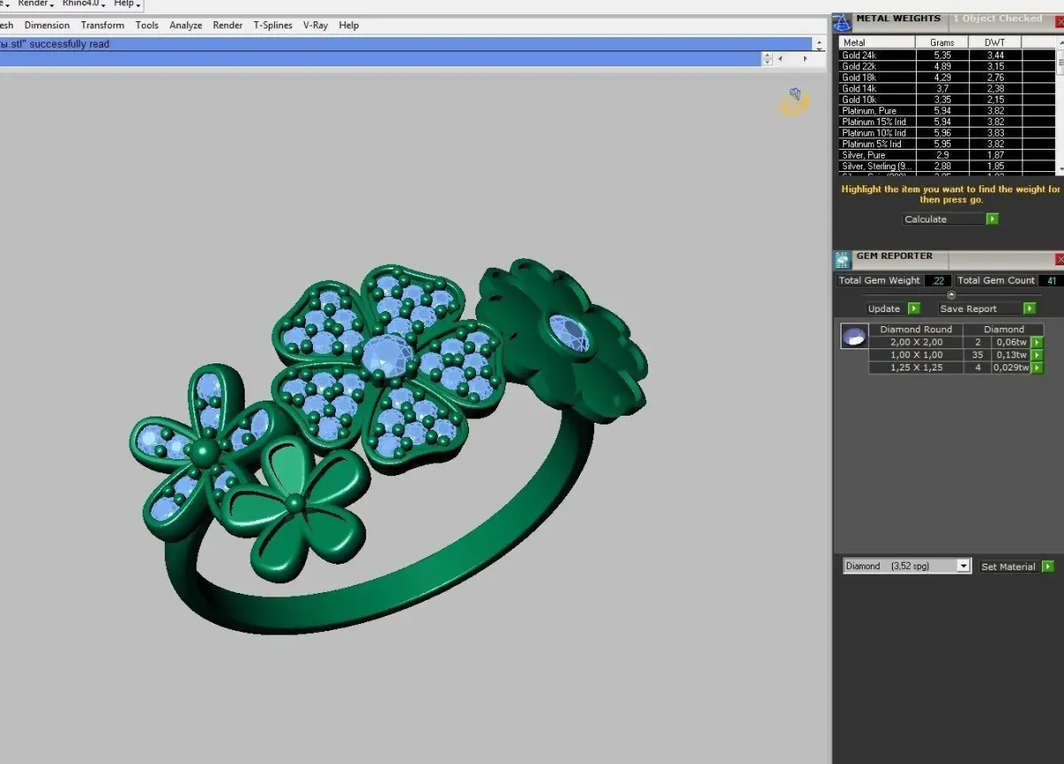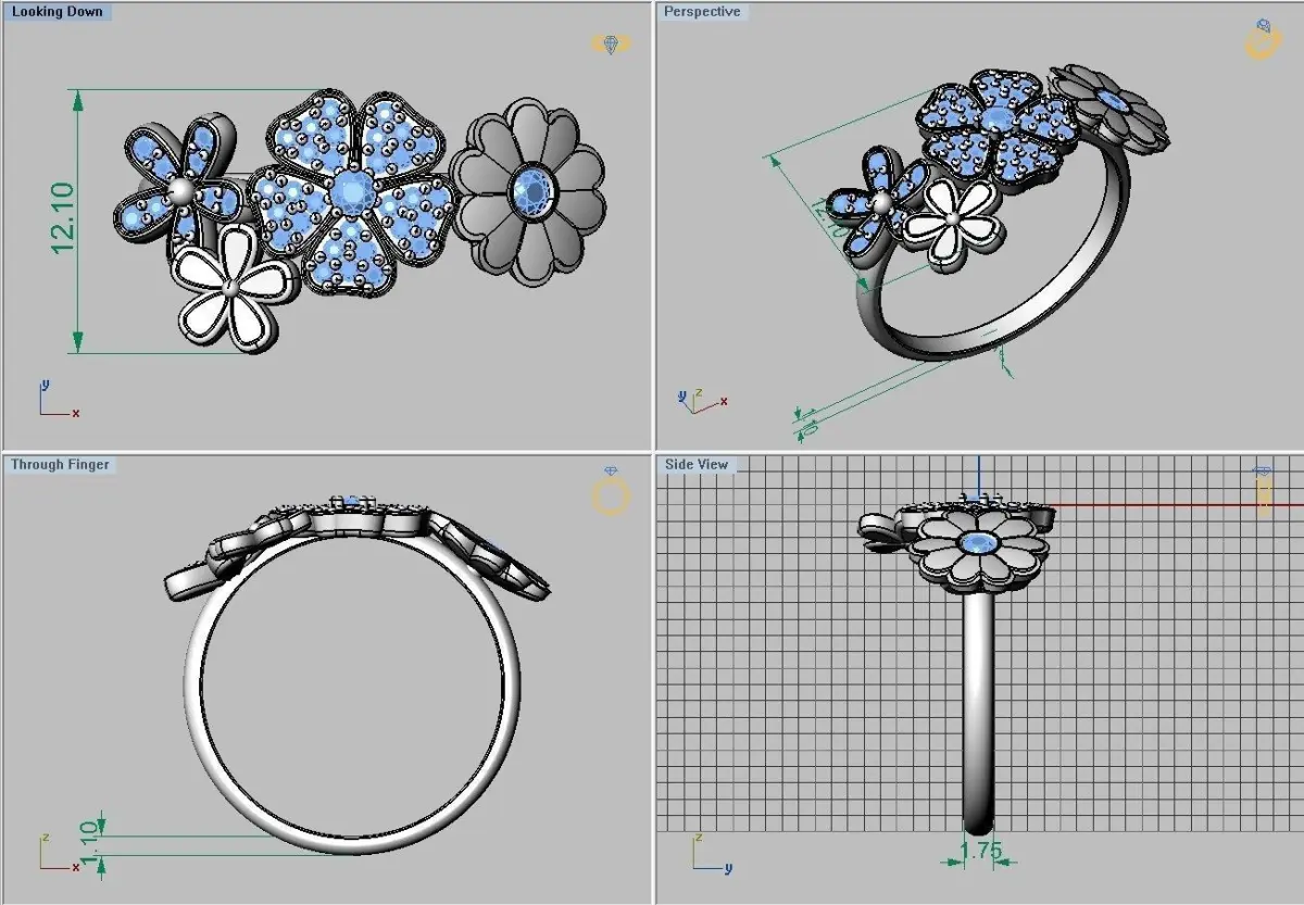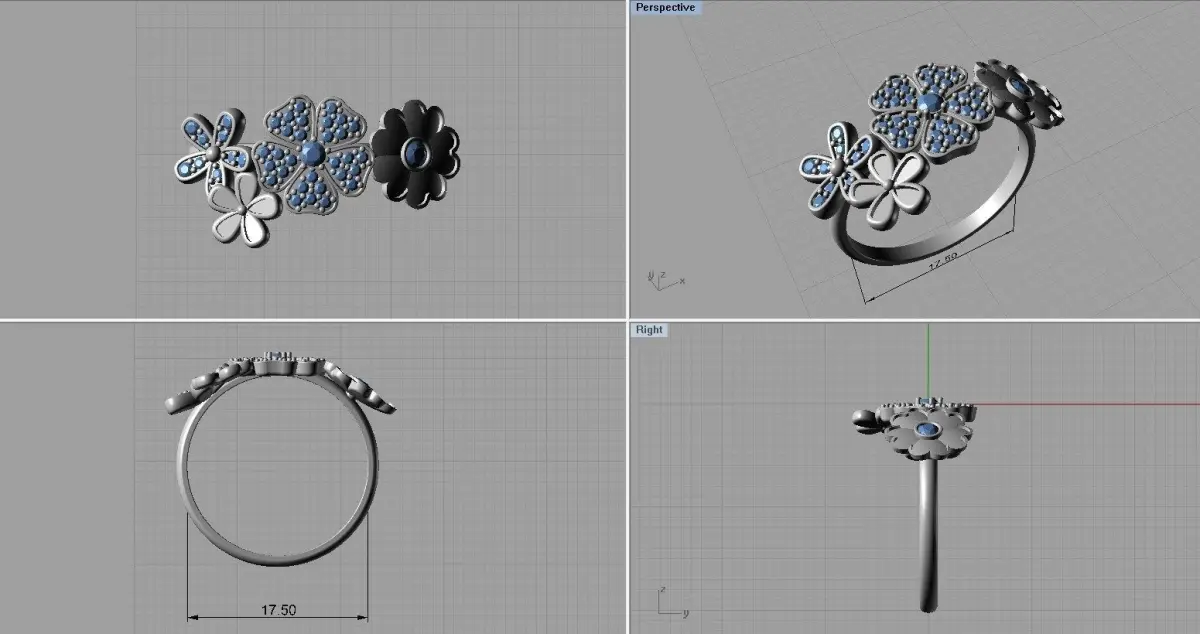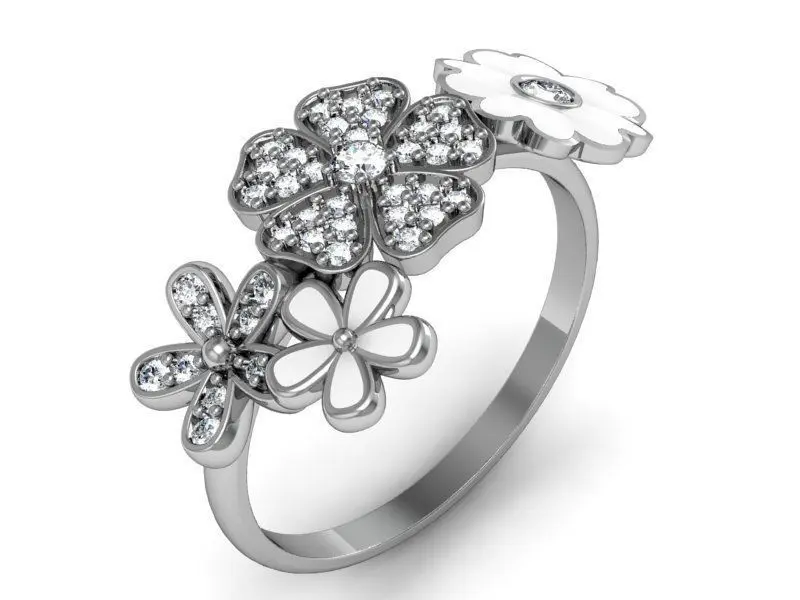 Ring with enamel and diamonds ready for 3d print. Ring size - 17.5. Gems: 2mm - 2, 1mm - 35, 1.25mm- 4.Approximate weight: 3.7 g (14K)All STL files were checked by Materialise Magics software and ready for prototyping. Additional sizes are available as another item or by demand.