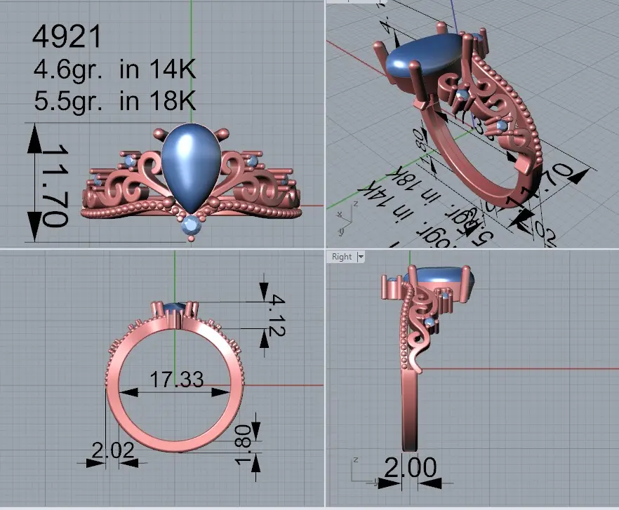 Ring with pear cabochon 4921,3d printable model.