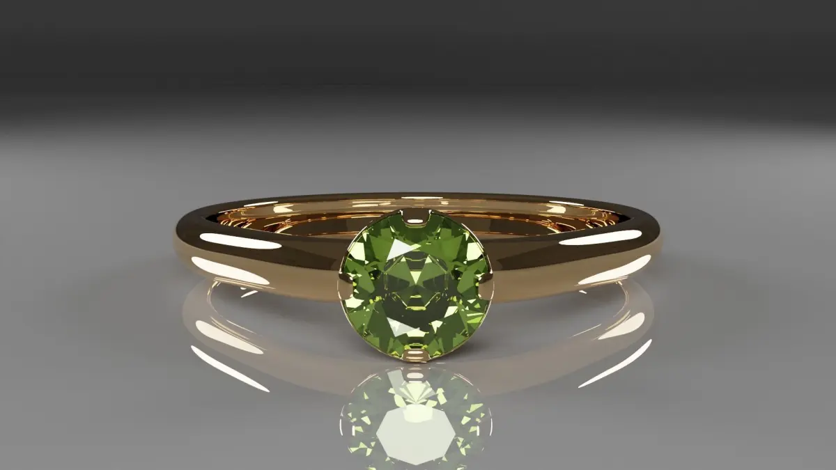 The model consists of 3 elements:Ring.Crown for stone.Peridot stone.