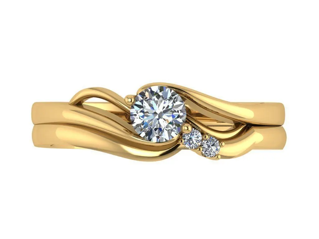 The round-cut diamond is exactly what it sounds like: A round diamond. Each circular stone is cut to have 58 facets, which makes it exceptionally sparkly and hard to miss. It’s a classic shape that will always catch the light. Round-cut diamonds look good in any setting and in any style ring. This simple yet striking diamond solitaire proves that less is more. A piece like this is not only practical and easy to wear, but it will go with just about anything in your jewelry box. It comes with elegant and dainty band with two round gems. If you want a simple and elegant style, here is excellent choice for you. Ring and band together!