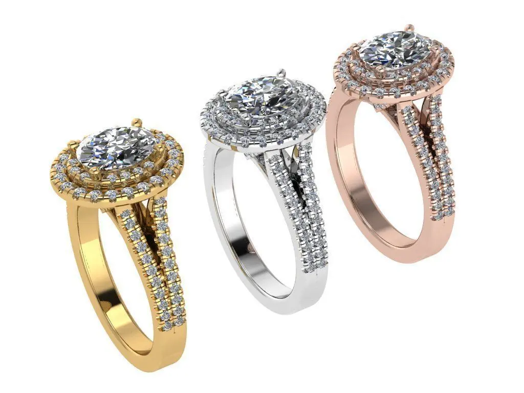 Ring184 oval diamond halo engagement ring gold 3D print model