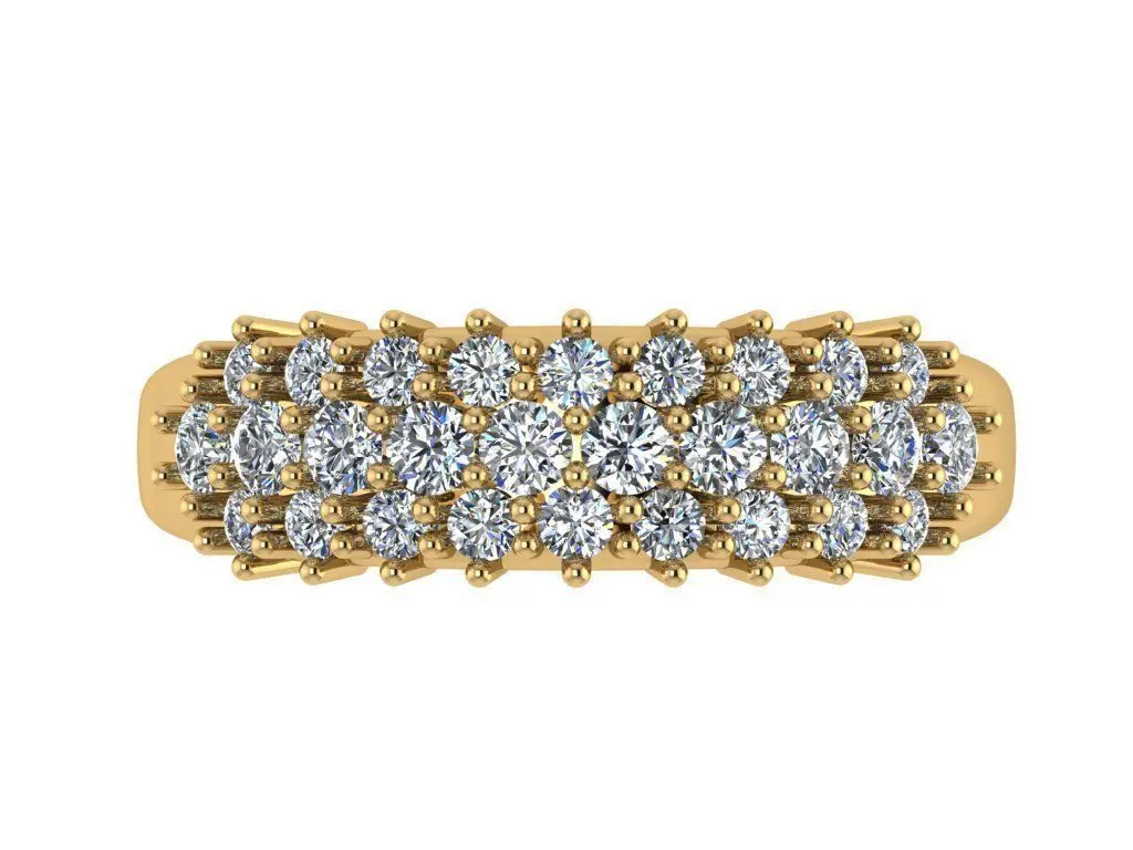 Show off your love of diamonds with this fabulous trio of sparkling rows in 14k gold in prong setted round diamonds that catches the light in every side. We recomended this model for daily wear, because of it's classy and timeless style. You can make it colorfull or full of white gems, rose, yellow or white gold, like you want. If you are classy lady who prefer shiny accessories, this ring is just for you.